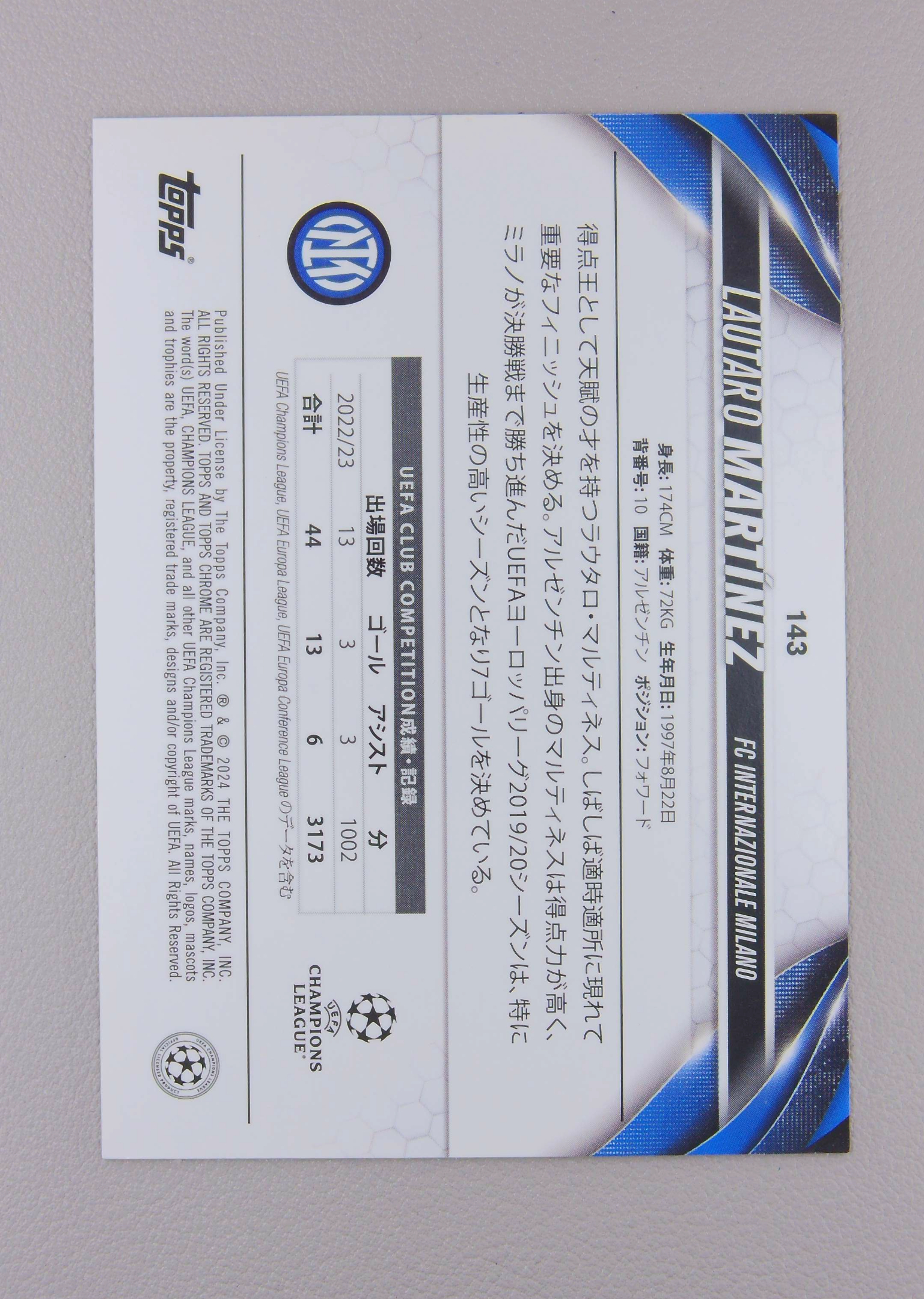 2024 Topps Chrome Lautaro Martinez 劳塔罗 马丁内斯 国际米兰 绿迷宫折 日版 樱花 正TC 战神无双拍卡 (jay黄)