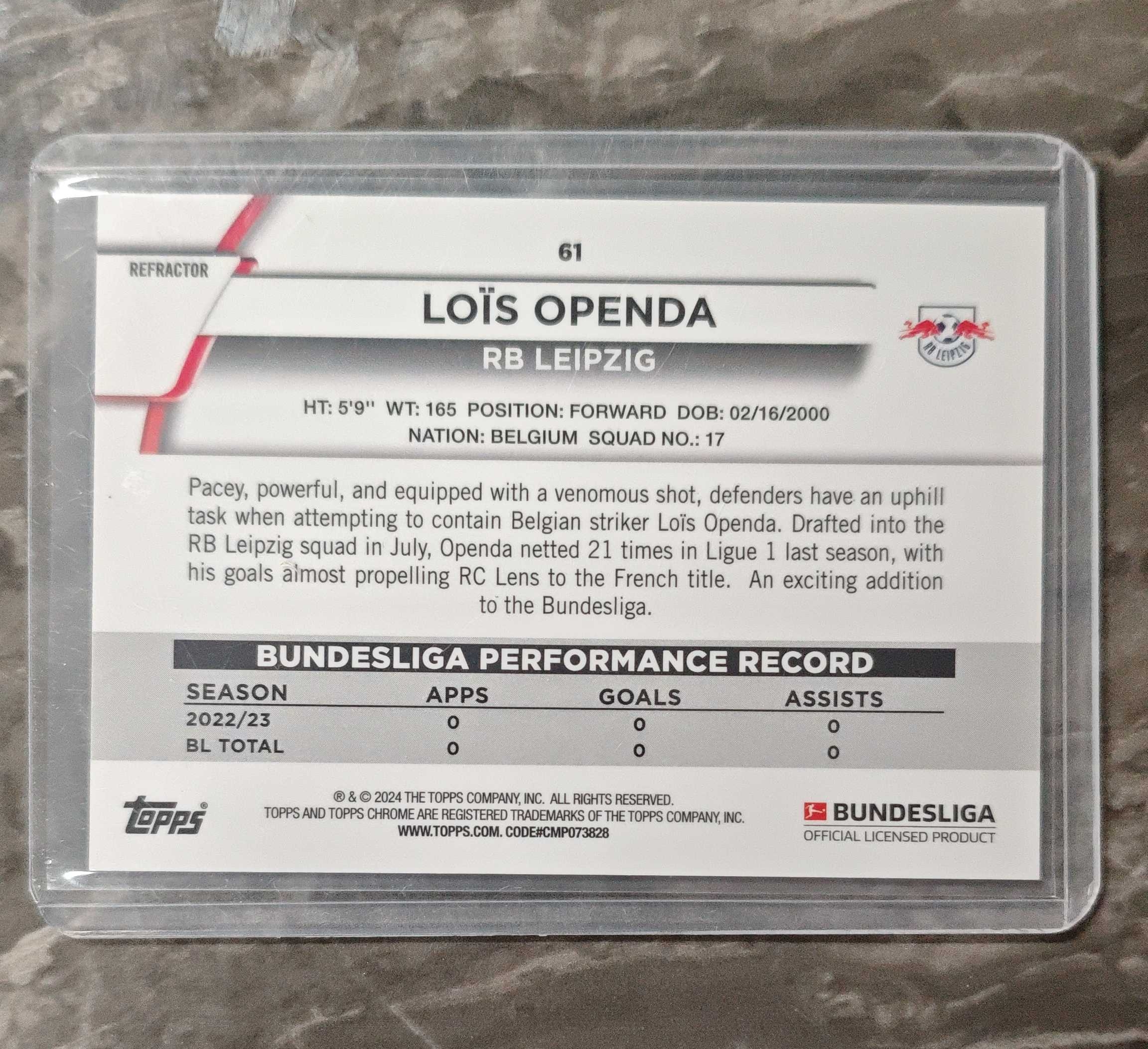 2024 Topps BUNDESLIGA chrome LOIS OPENDA 德甲TC 奥蓬达 莱比锡红牛 比利时 银菱格 带编 074/225编 卡品如图 收藏凑套必备 V13