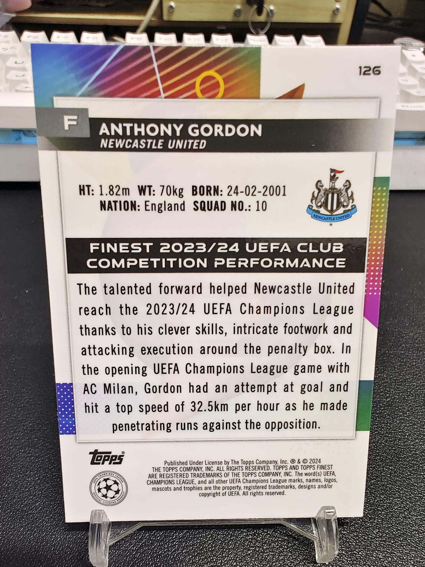 【浩行拍卖 截标预付82%】2024 topps finest Anthony Gordon 欧冠 纽卡斯尔 安东尼 戈登 紫折 折射 60/299编 专收必备 瑕疵看图「烂曼」1116E03恁