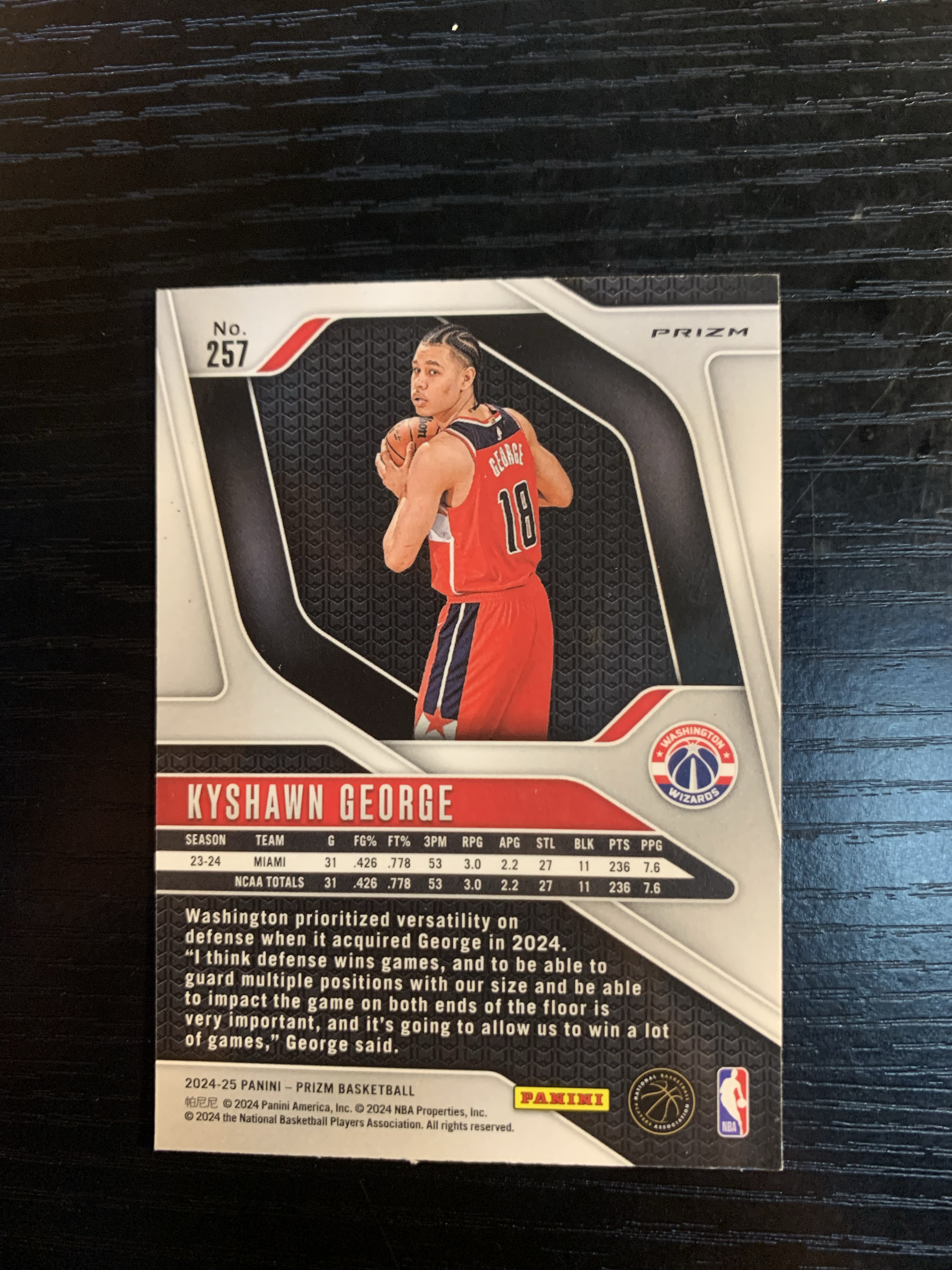 2024-25 Panini Prizm Kyshawn George 新秀RC 凯肖恩 乔治 奇才 Base 粉碎冰折 于此