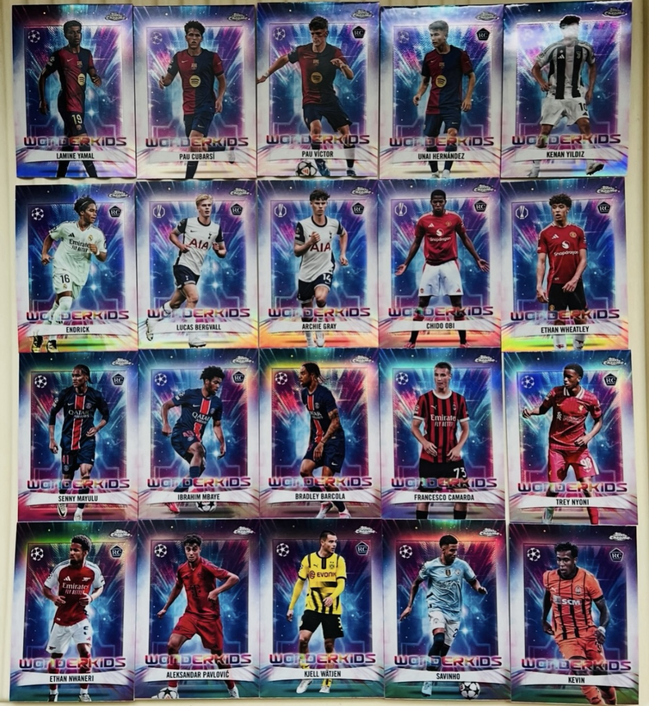 2024-25 topps Chrome Lamine Yamal 2025 欧冠tc Wonderkids 亚马尔 恩瓦内里 RC 恩德里克 格雷 奥比 神奇小妖特卡 全套20张
