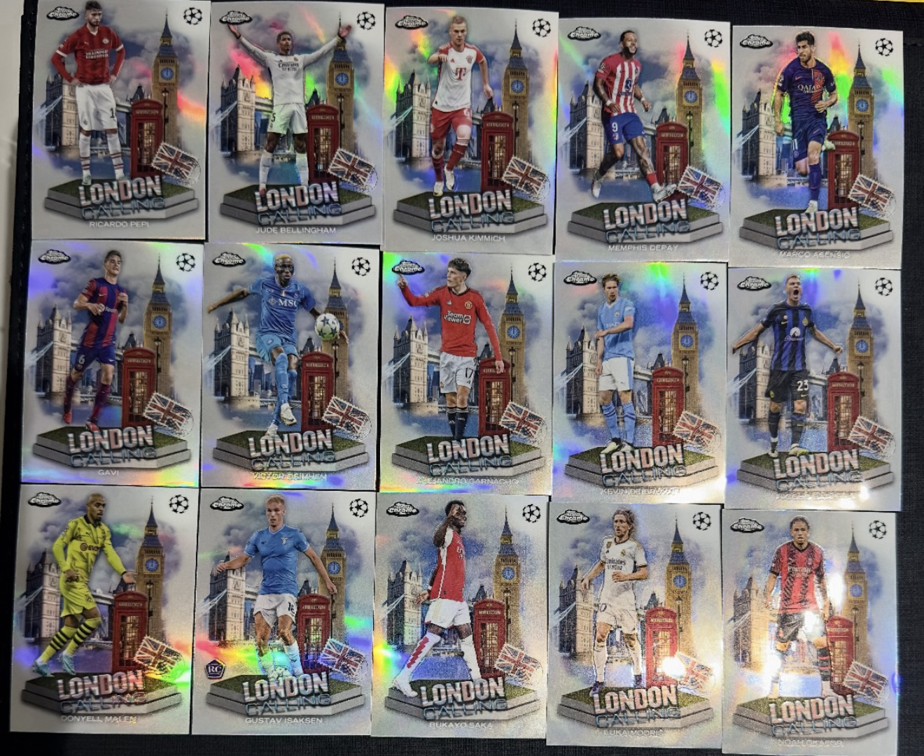 2023-24 Topps Chrome Luka Modric 欧冠TC 皇马 贝林厄姆 莫德里奇 曼城 德布劳内 曼联 加纳乔 伦敦地标特卡 银折 全套1-15张 不重复
