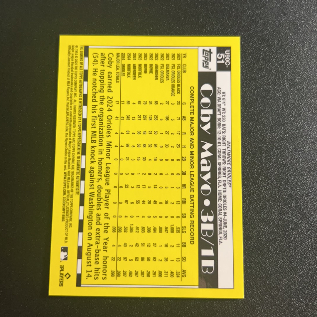 2025 Topps 【锡安代卖】 累计照常 棒球mlb series update 顶包Chrome签字 红平行5编 巴尔的摩金莺 大热新秀 coby mayo 科比 梅奥 卡品如图 沪瘪陆