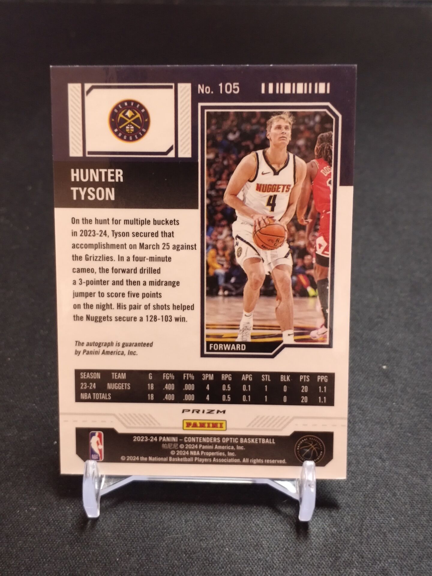 【浩行拍卖 截标预付82%】2023-24 panini contenders optic hunter tyson 球票 掘金 亨特 泰森 RC 新秀 银折 折射 签字 卡签 专收必备 瑕疵看图「阿黑123」1116Q01緲