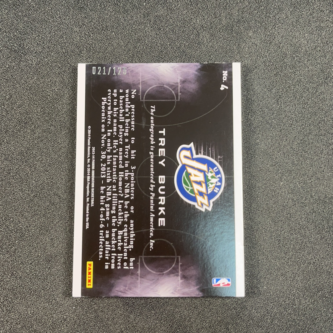 2013-14 Panini Innovation Trey Burke RC 前广东宏远外援 小艾弗森 特雷 伯克 爵士 新秀 卡签 镜面签字 背号签 125编 稀有 值得收藏