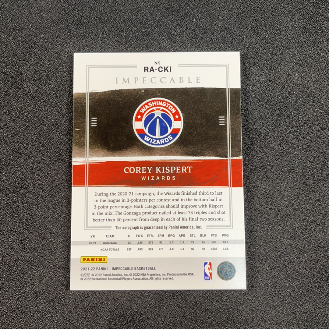 2021-22 Panini Impeccable Corey Kispert RC 科里 基斯铂特 奇才 小真金 新秀 卡签 82/99编 签字 潜力股 卡品如图