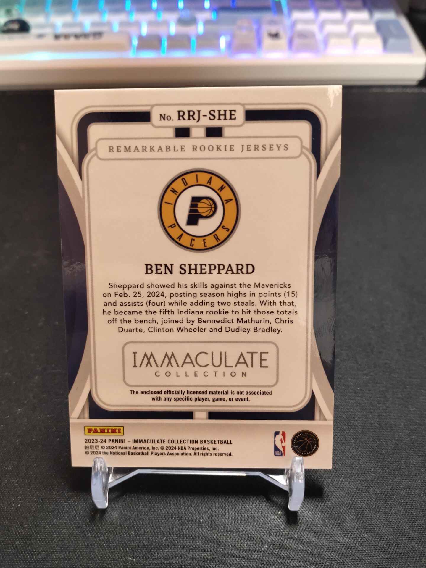 【浩行拍卖 截标预付82%】2023-24 panini immaculate ben sheppard 步行者 本 谢泼德 rc 新秀 球衣 物料 31/99编 专收必备 瑕疵看图「阿黑123」1116Q01緲