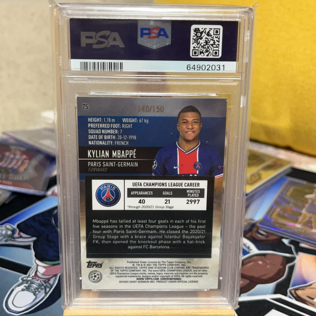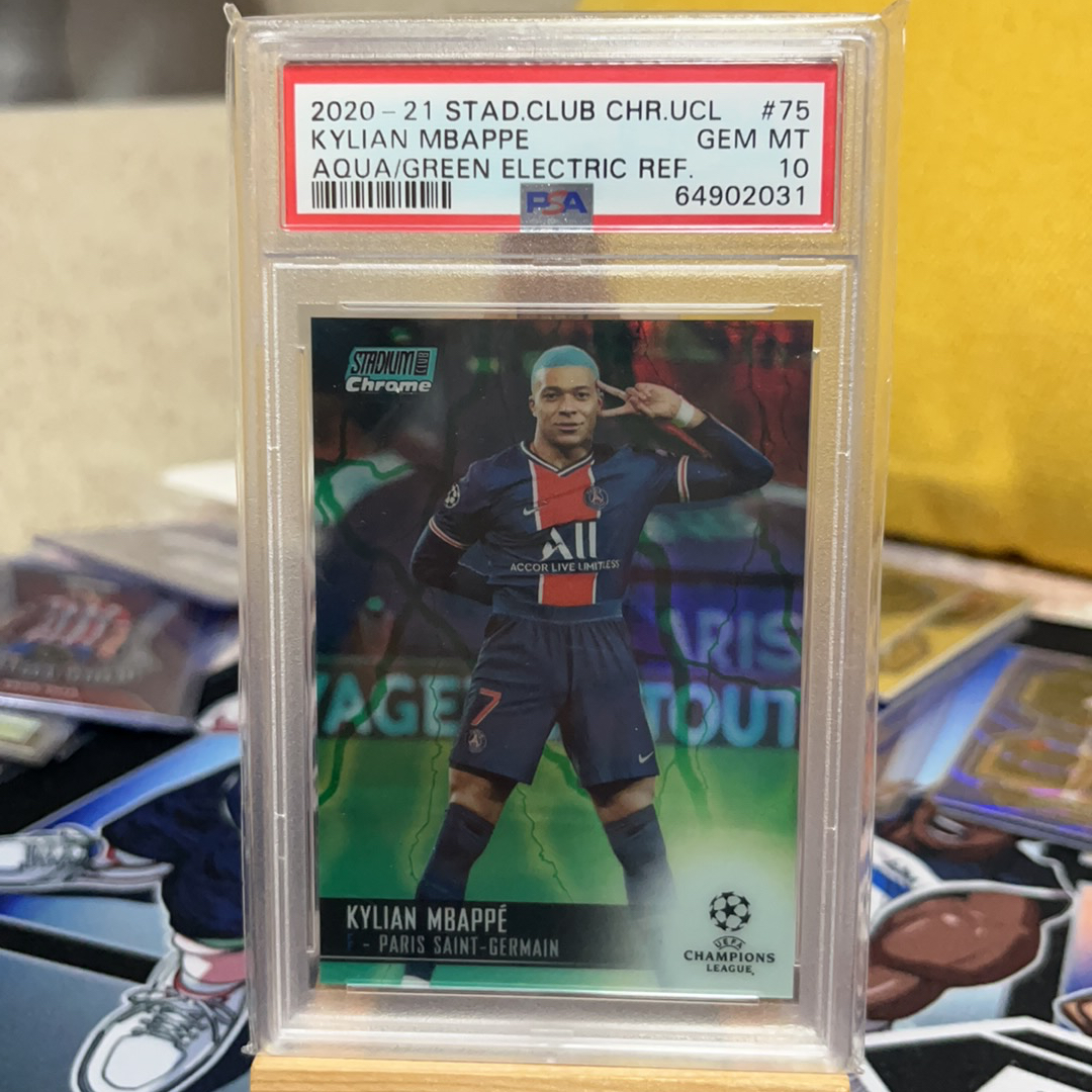 2020-21 Topps Chrome Kylian Mbappe 元年 欧冠 Chrome SC 竞技场 巴黎圣日耳曼 PSA 10 绿闪电青折 150编 忍者神龟 基利安 姆巴佩 【高老师】