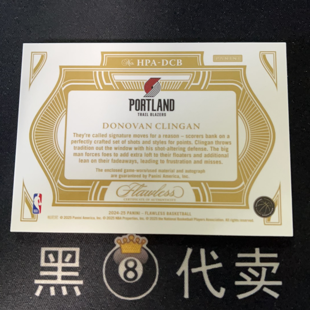 20【黑8代卖】2024-25 Flawless 手提 Donovan Clingan 多诺万 克林根 RC 新秀 绿平行 签字 卡签 patch暴力切割 2/5编 HPA 卡品如图【Eddie】