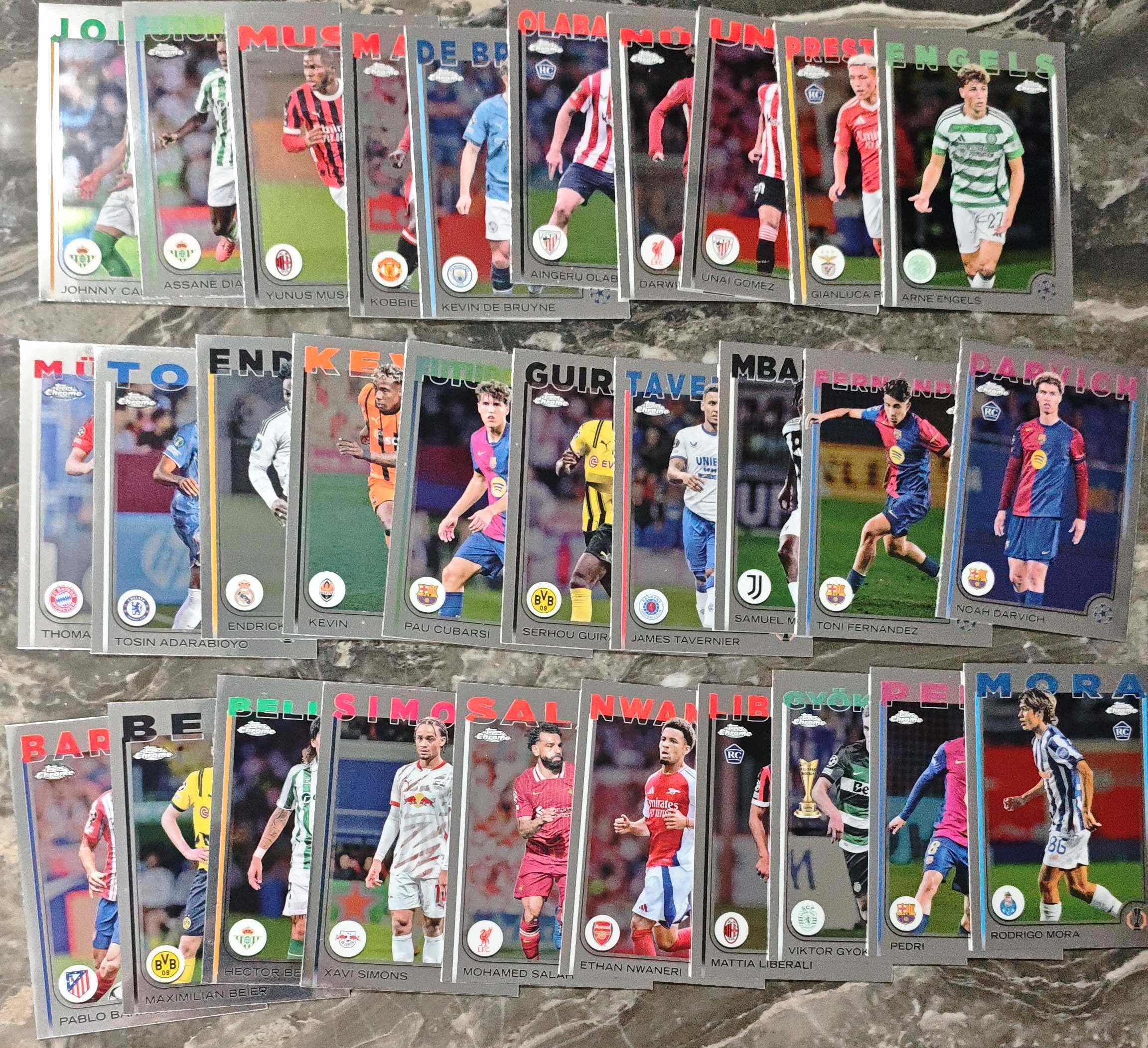 2024-25 Topps chrome 欧冠TC 德布劳内 科比梅努 托辛 萨拉赫 恩瓦内里 罗德里戈 莫拉 RC新秀 base 打包 lot30 卡品如图 收藏必备TC2 V15