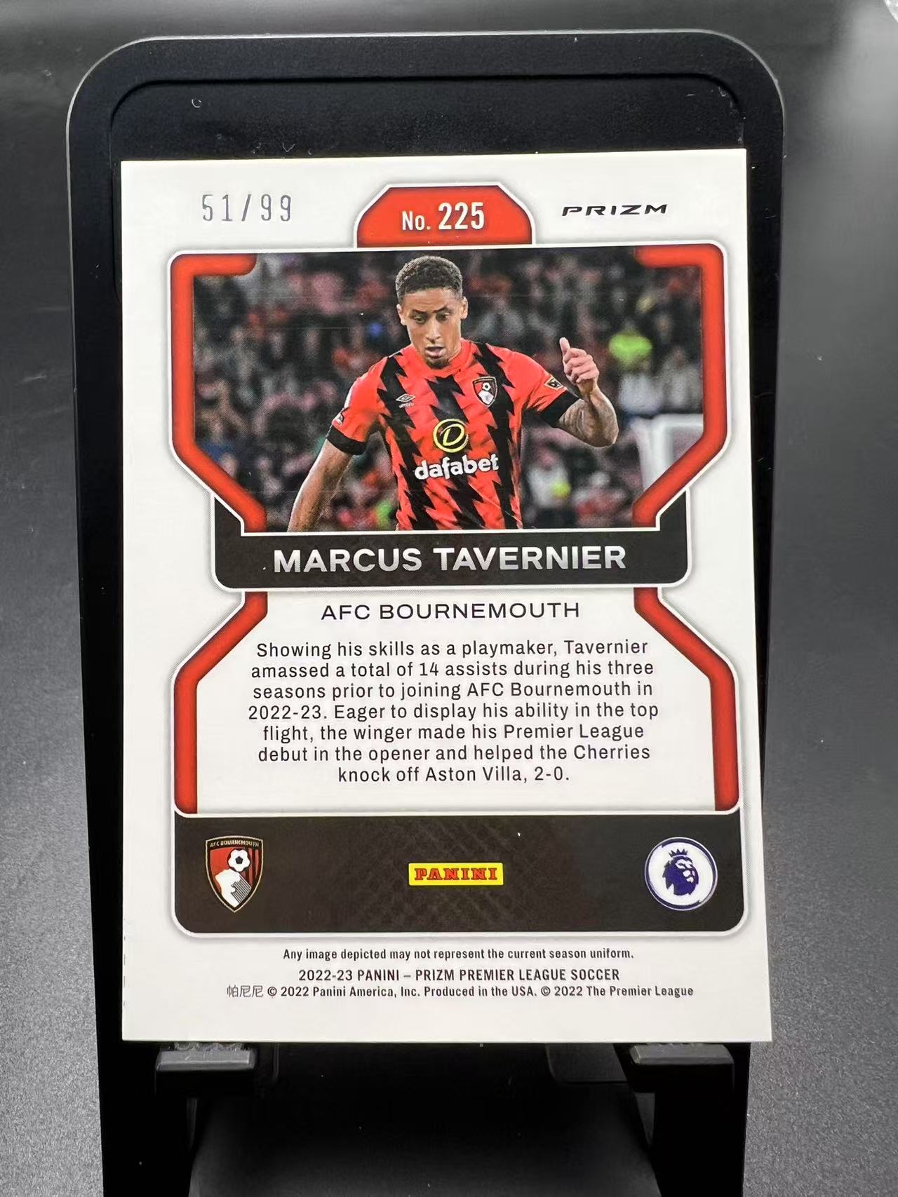 2022-23 Panini Prizm Marcus Tavernier RC 【EC】 PZ 英超 伯恩茅斯 英格兰 马库斯 塔维尼尔 塔沃尼尔 折射 粉折 粉泡泡折 新秀 51/99编 日出61