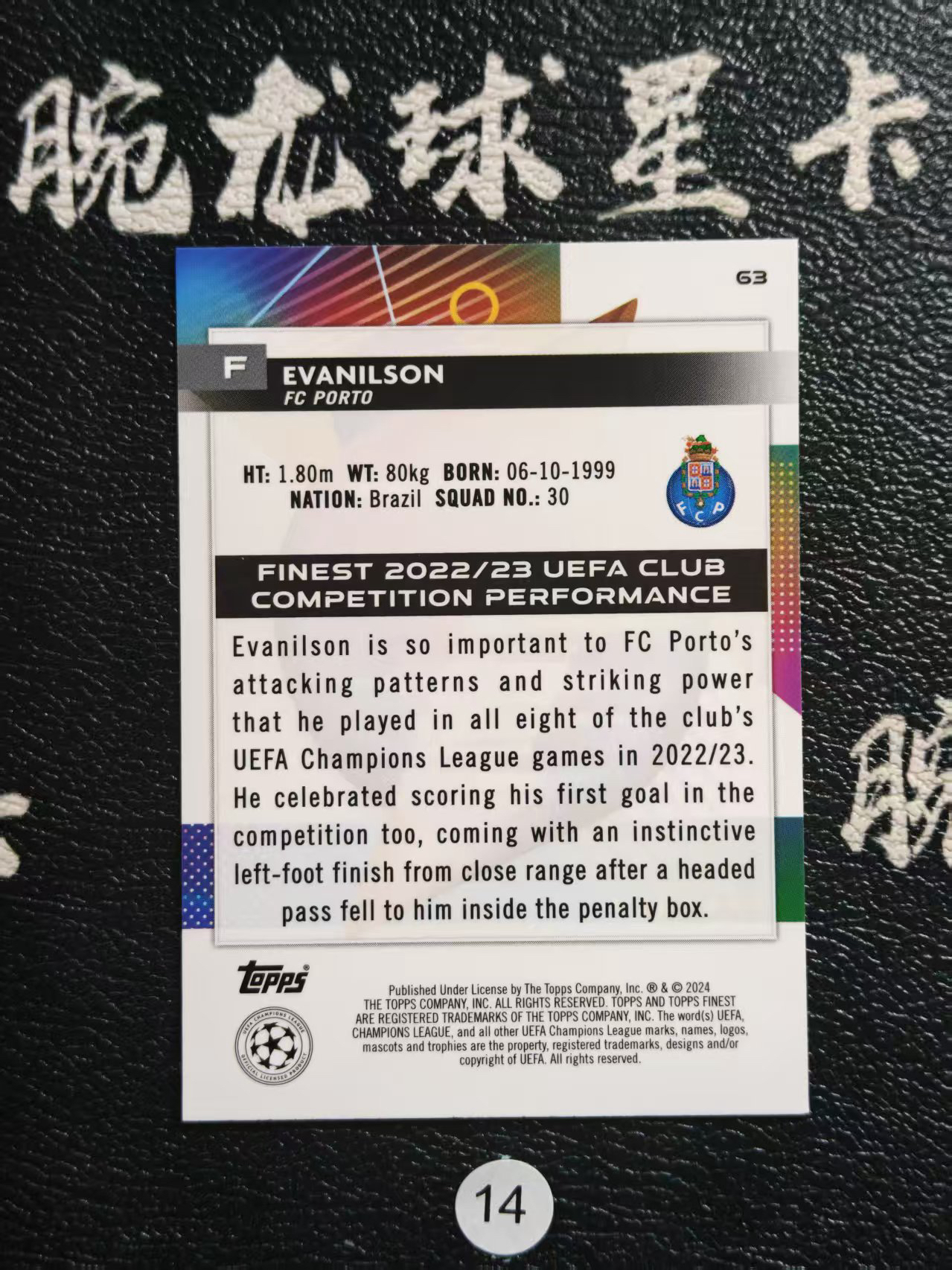 2024 【腕龙拍卖 接代卖】 腕龙青蛙AO2 Topps Finest 欧冠 欧战 埃万尼尔森 波尔图 紫shimmer折 199编 EVANILSON 卡品如图 收藏必备