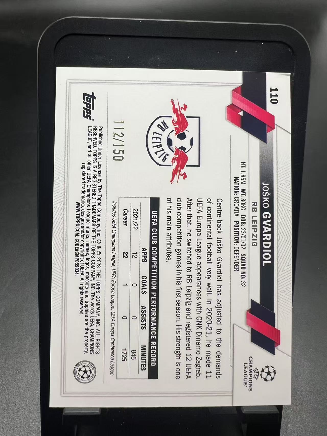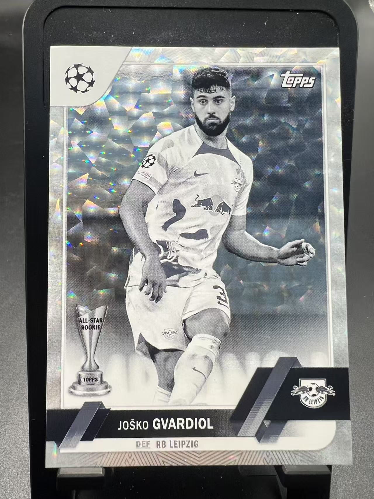 2023 Topps uefa josko gvardiol 【EC】 欧战 Ucc 莱比锡红牛 格瓦迪奥尔 112/150编 黑白变化版 碎冰折 日出60
