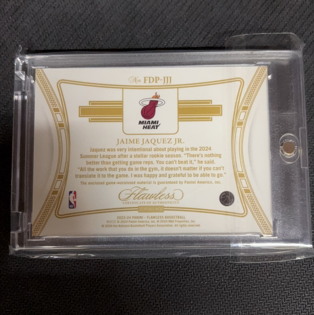 2023-24 Panini Flawless Jaime Jaquez Jr. RC 小海梅 哈克斯 新秀 rc 热火 手提 patch 暴力切割 双窗 10编 金平行 卡品如图