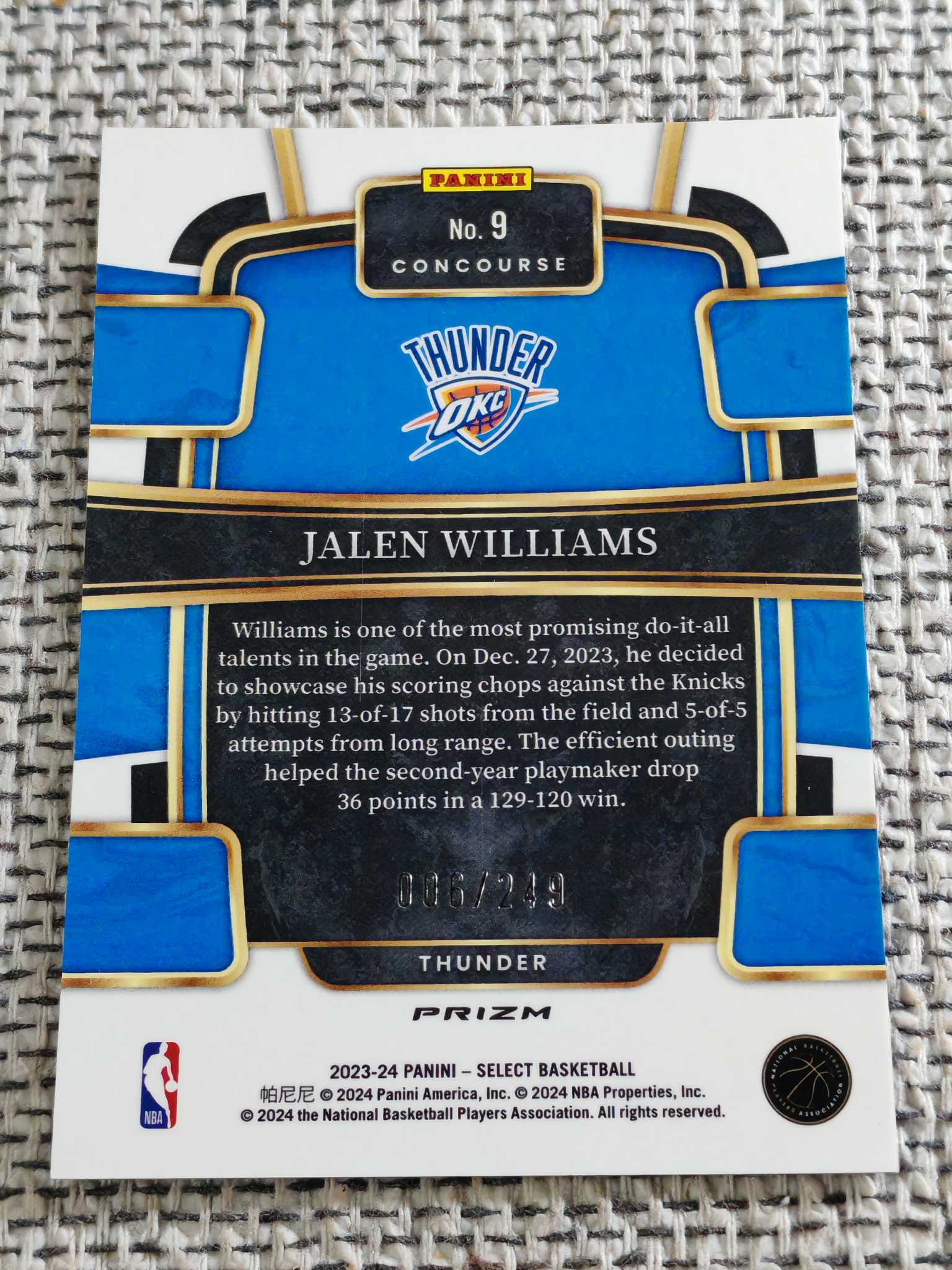 2023-24 Panini Select Jalen Williams 杰伦 威廉姆斯 蓝圈圈 /249编 大比例 切特亚历山大队友 YeZi队友