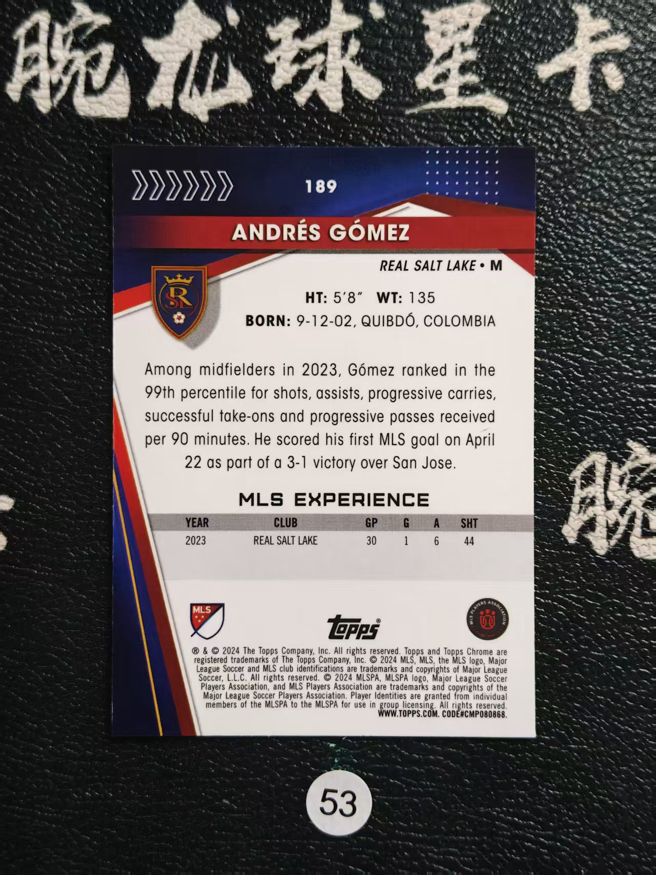 2024 【腕龙拍卖 接代卖】 腕龙E总AO4 Topps Chrome 美职联 TC 安德烈斯 戈麦斯 皇家盐湖城 紫折 170/199编 ANDRES GOMEZ 卡品如图 收藏必备