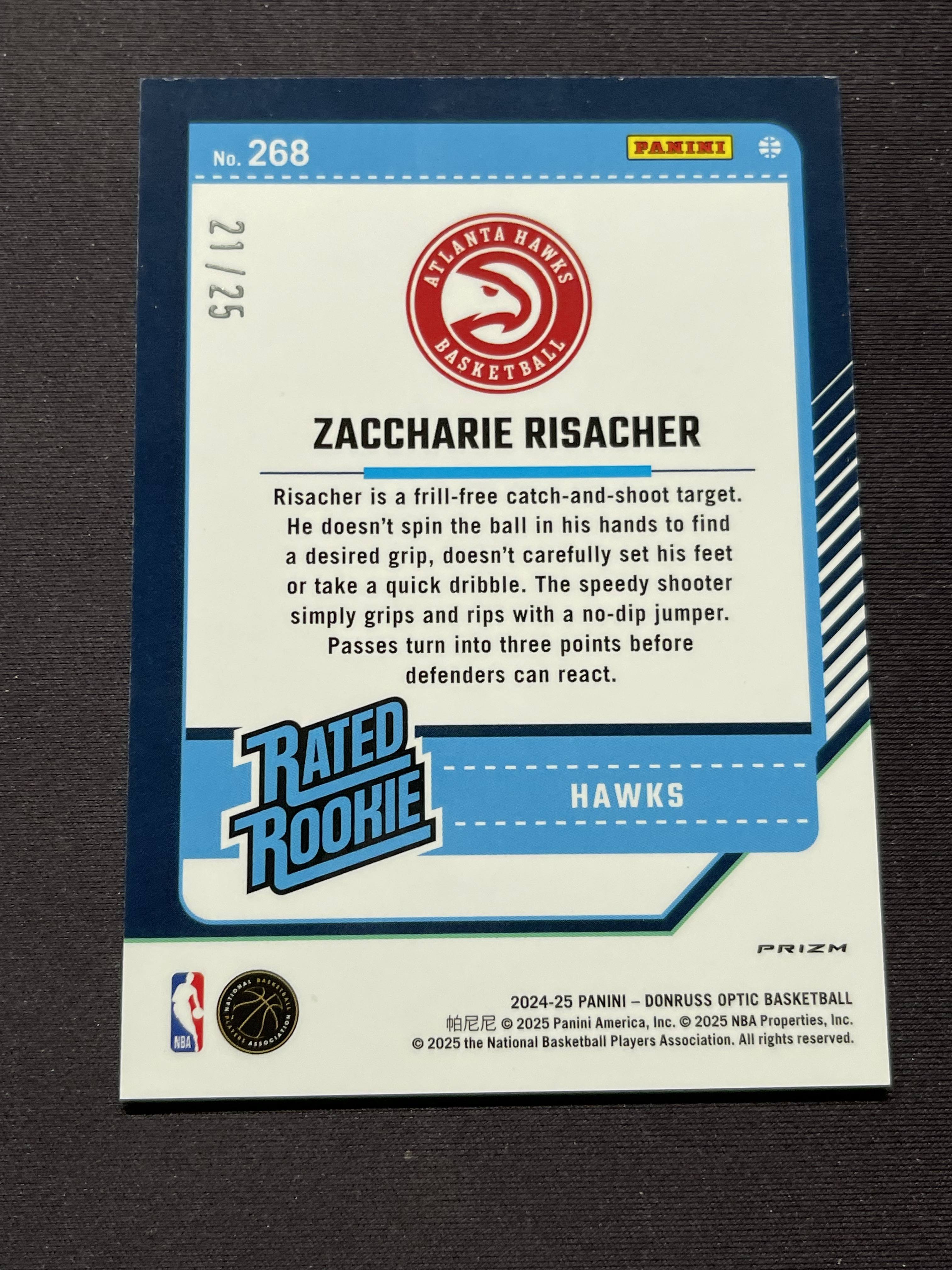 2024-25 Panini Donruss Opitc Zaccharie Risacher RC 老鹰 里萨谢 新秀 折射 绿圈圈折 21/25编 不累计「老夫子」ju061