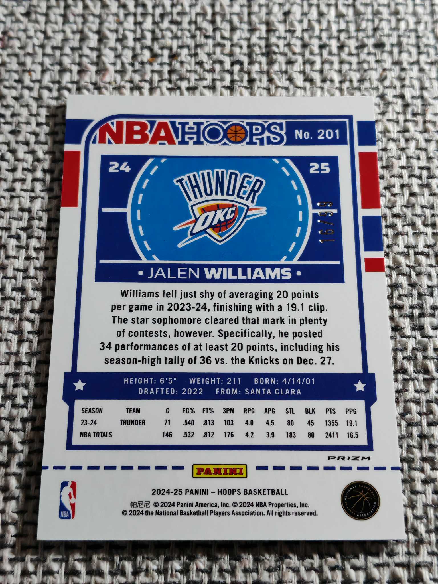 2024-25 Panini NBA Hoops Jalen Williams 杰伦 威廉姆斯 /99编 红折 超低编 YeZi代卖 亚历山大切特队友 eBay价高
