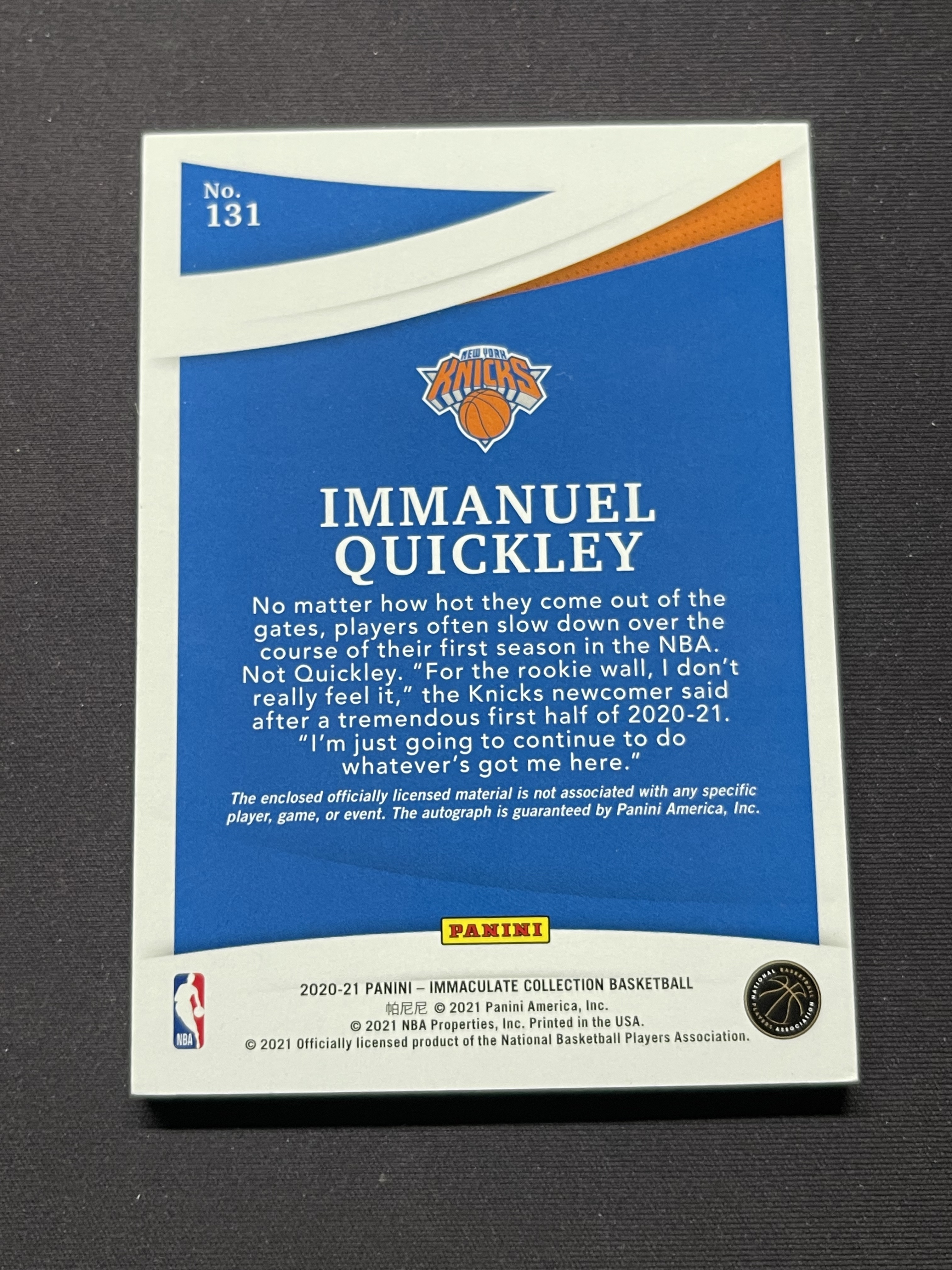 2020-21 Panini Immaculate Immanuel Quickley RC 尼克斯 奎克利 镜面 新秀 patch 签字卡签 RPA 58/99编 不累计「老夫子」ju061
