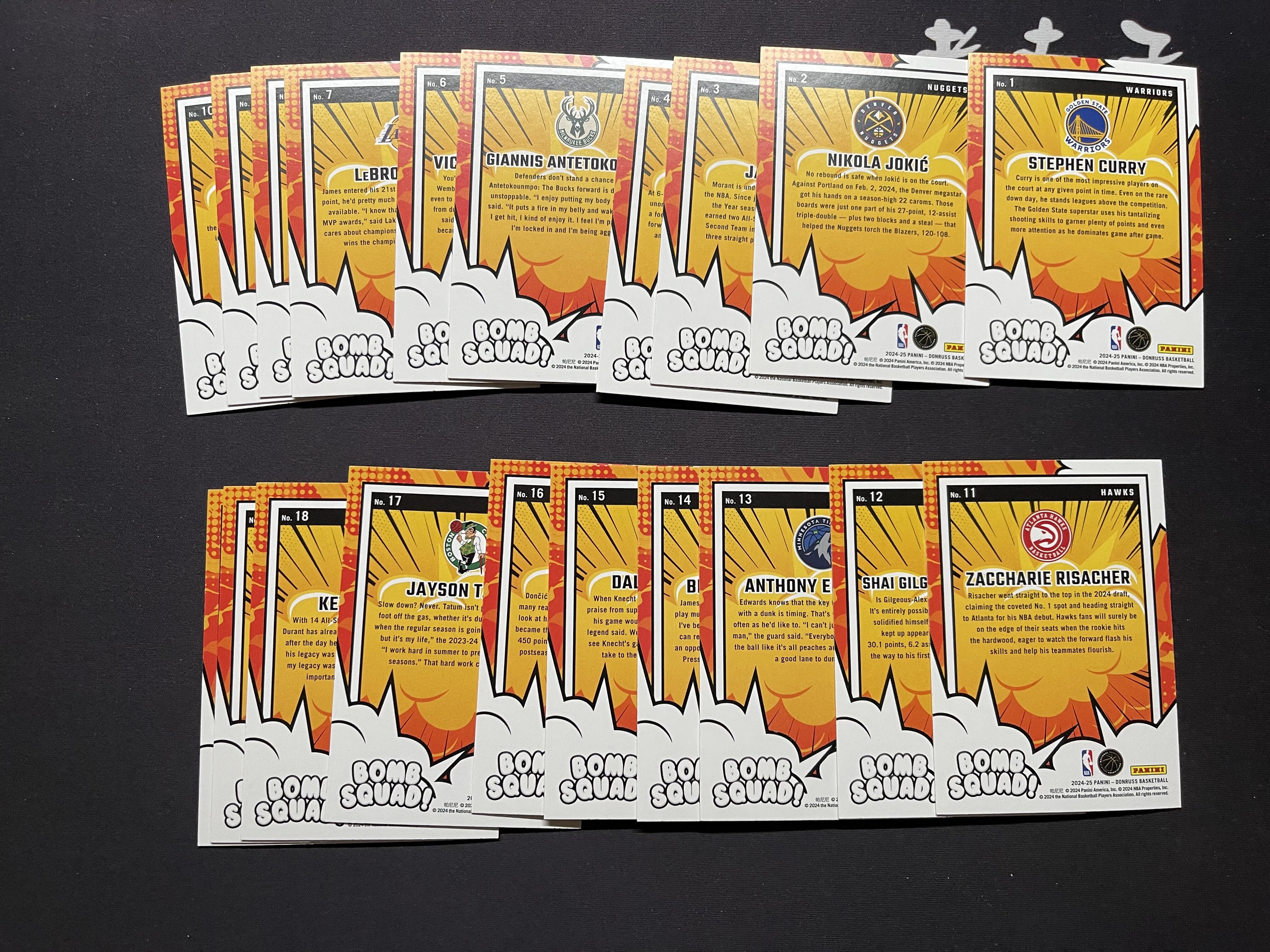 2024-25 Panini Donruss 杜蕾斯 库里约基奇莫兰特字母哥文班亚马詹姆斯东契奇华子亚历山大杜兰特等 Bomb Squad!特卡 20张一套齐 品相不保证 第4组「老夫子」ju061