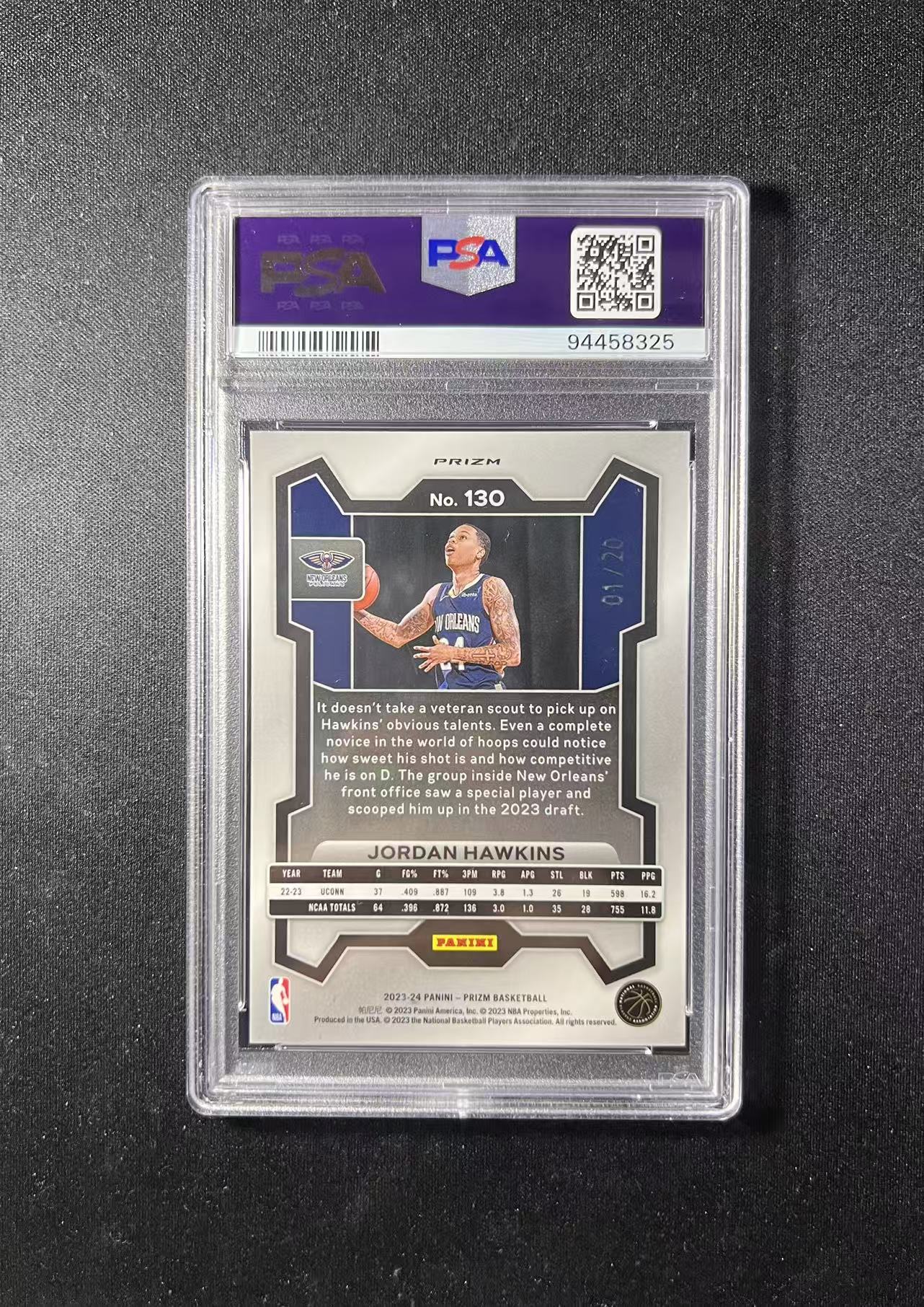 2023-24 Panini Prizm Jordan Hawkins RC 鹈鹕 乔丹 霍金斯 樱花折 圈圈折 折射 Choice 01/20编 首编 新秀 PSA评级10分 普尔 锡安队友