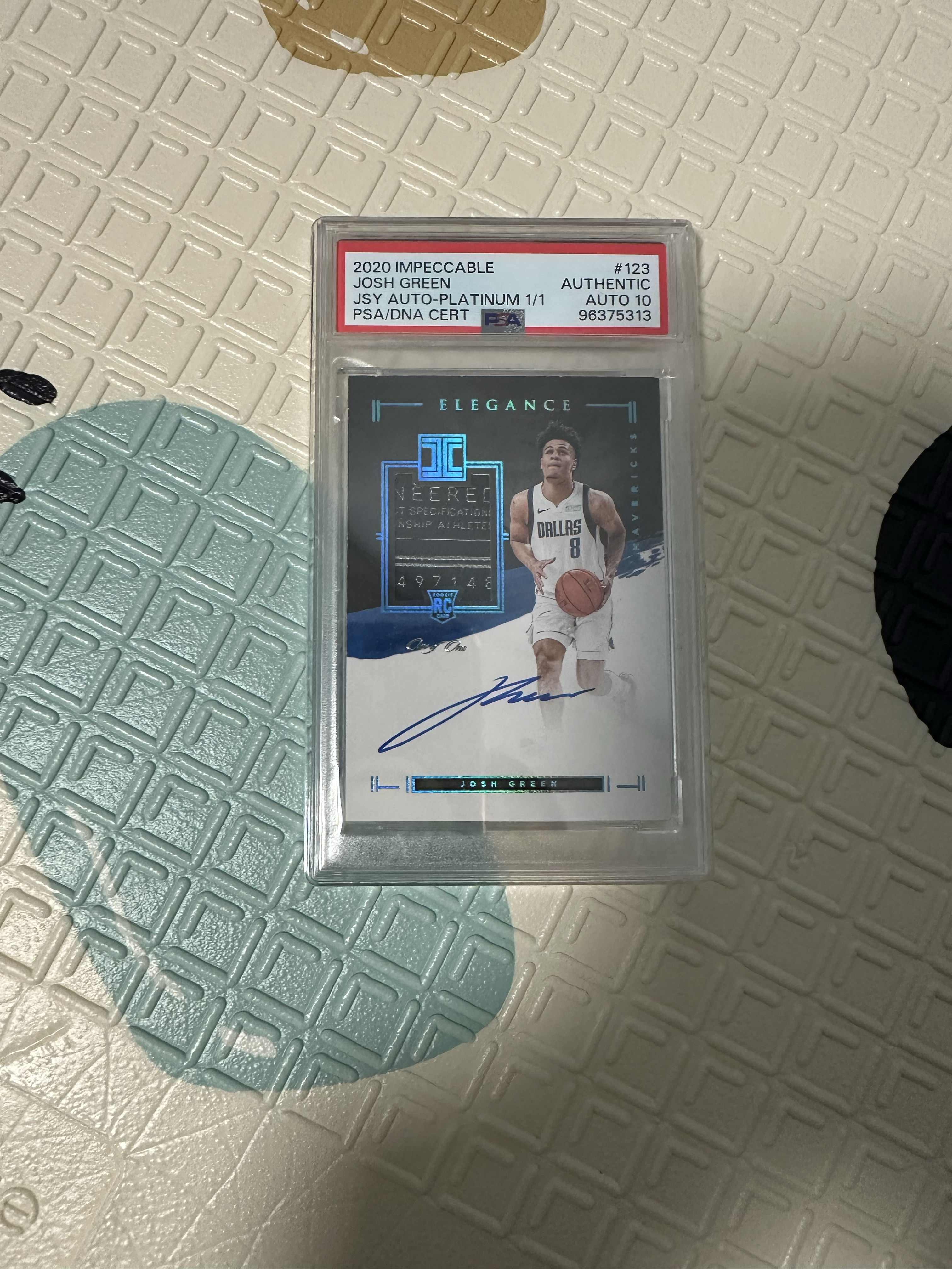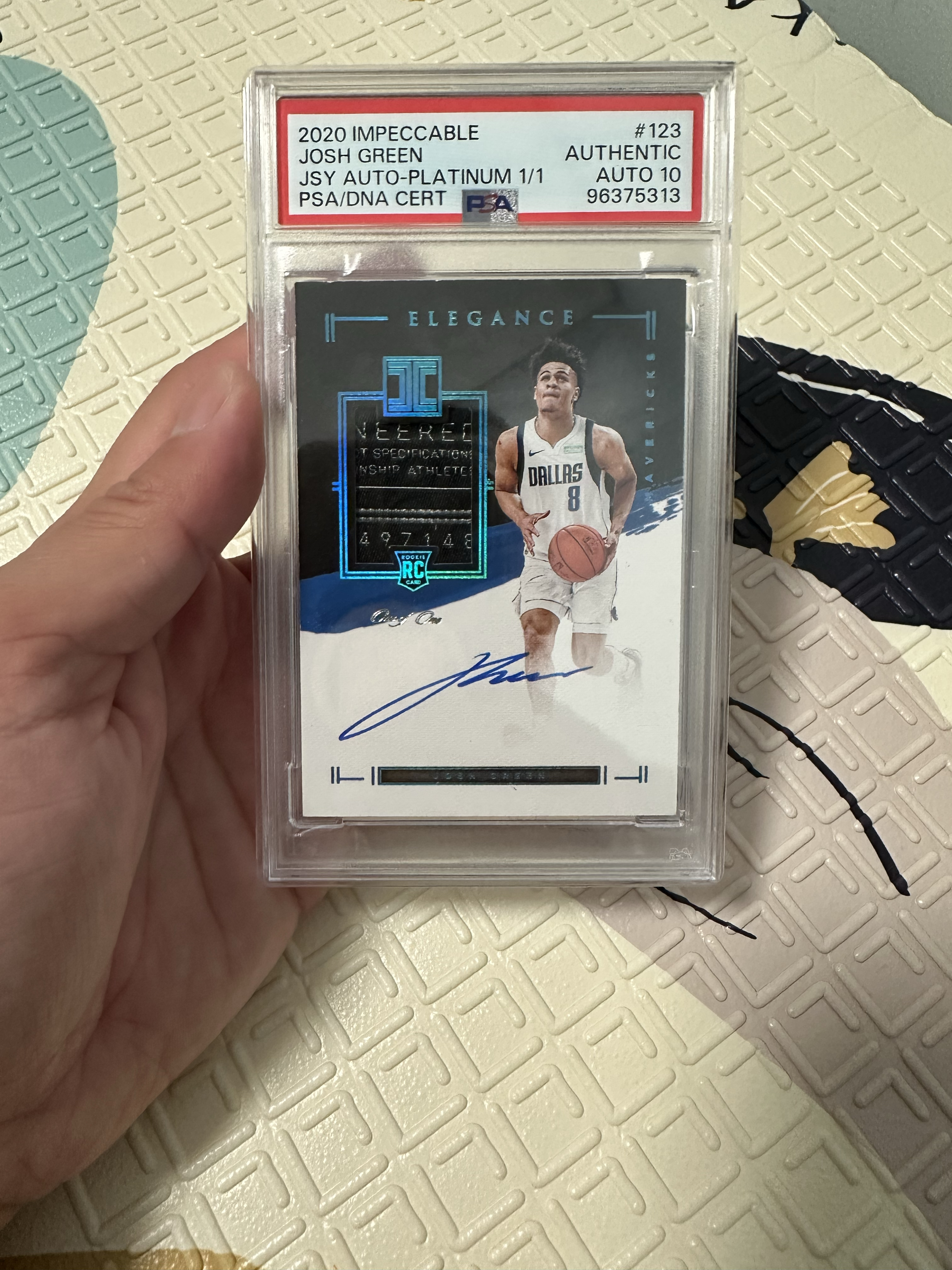 2020-21 Panini Impeccable Josh Green RC 小真金 约什格林 新秀 1/1 ofo 湖水蓝 水洗标切割 独行侠 黄蜂 鲍尔 东契奇 队友 nba psa10 卡签
