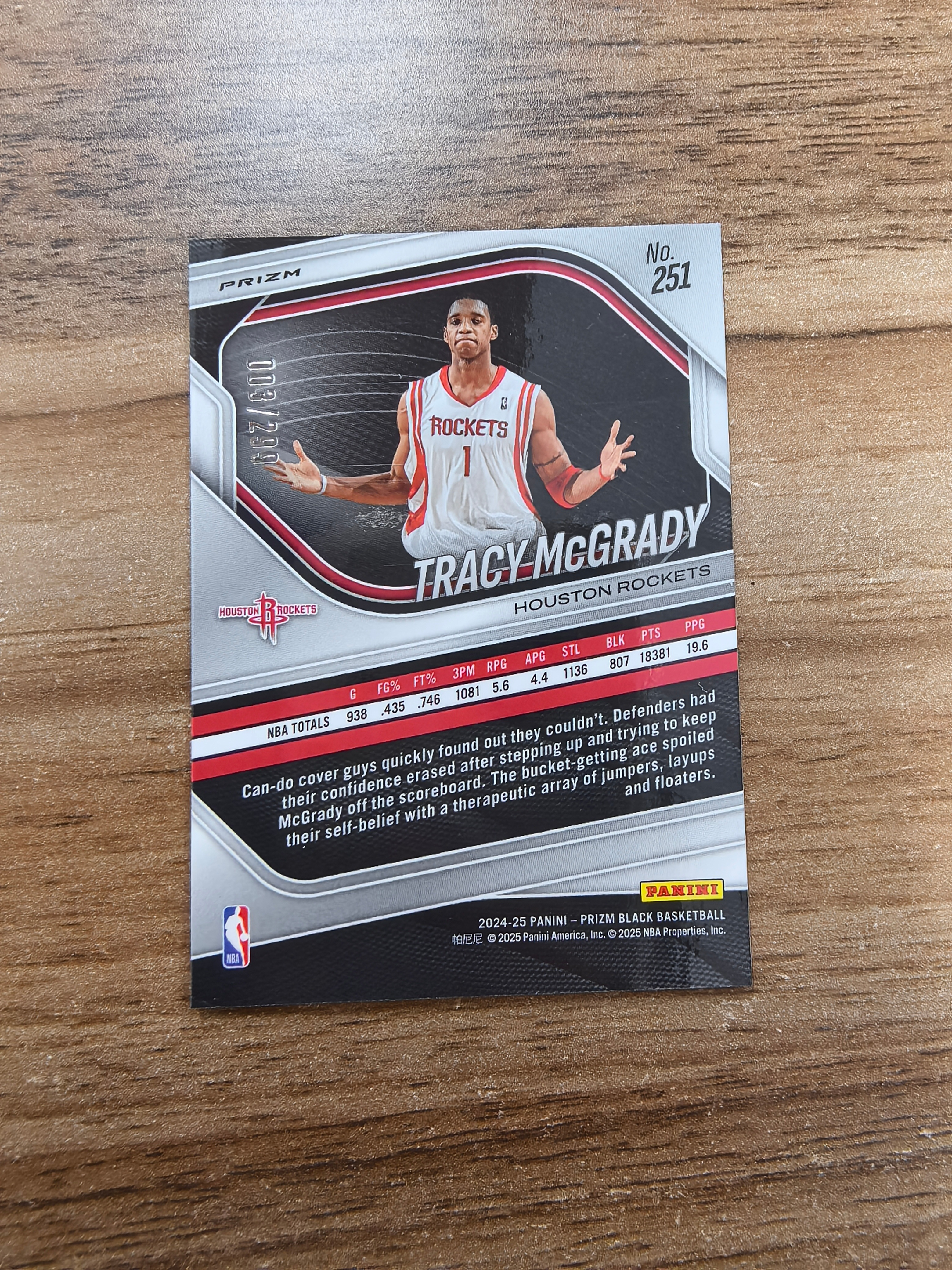 2024-25 Panini Prizm Black Tracy McGrady 火箭 麦迪 003/299编 红折 折射 微瑕 实卡精美 卡品如图 收藏必入 流浪