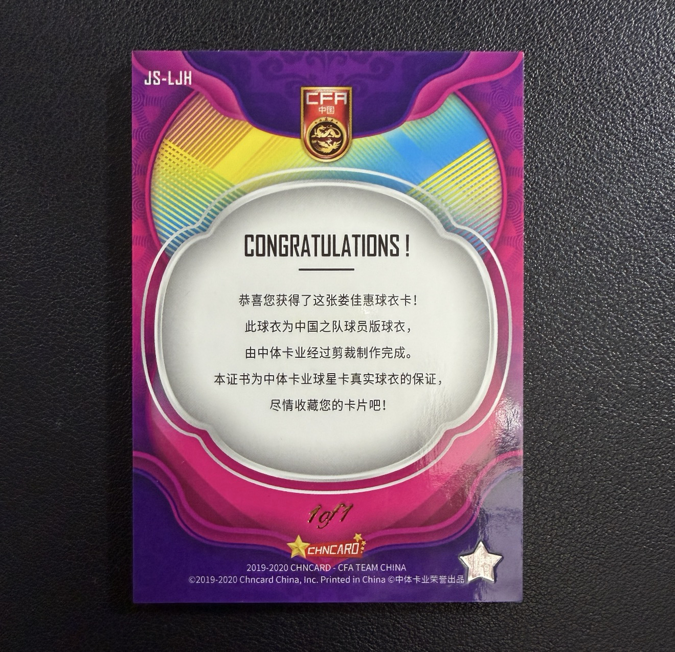 2019-2020 China Lou jiahui 中体卡业 中国之队 娄佳惠 红碎冰折 1/1 one of one 折射 球衣 物料 patch 暴力切割 专收必备 瑕疵看图 国青