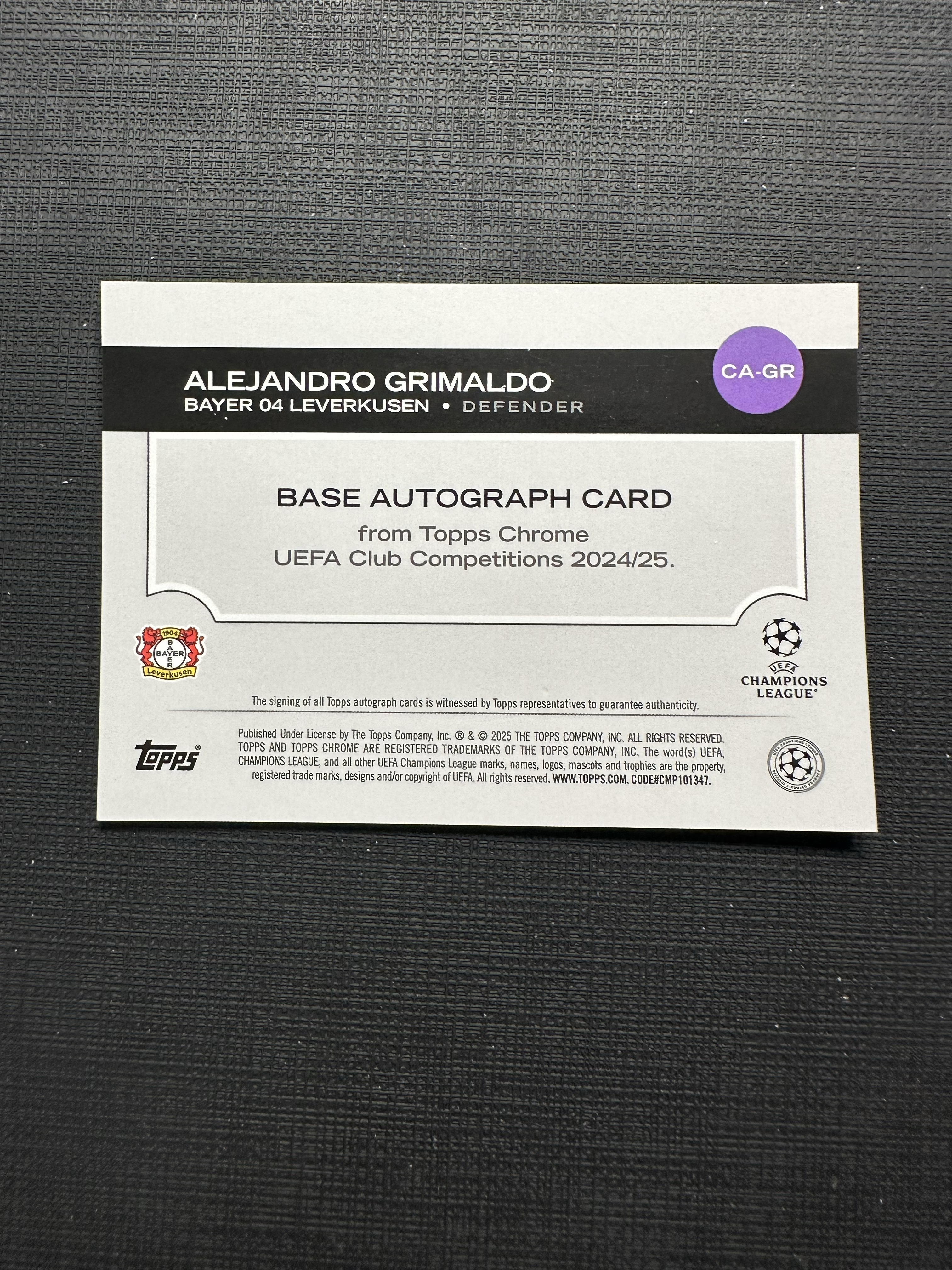 2024-25 Topps Chrome Alejandro Grimaldo TC 正系列 亚历杭德罗 格里马尔多 勒沃库森 签字 银折 西班牙 本菲卡 巴萨 巴塞罗那 欧冠【卡品如图】王1