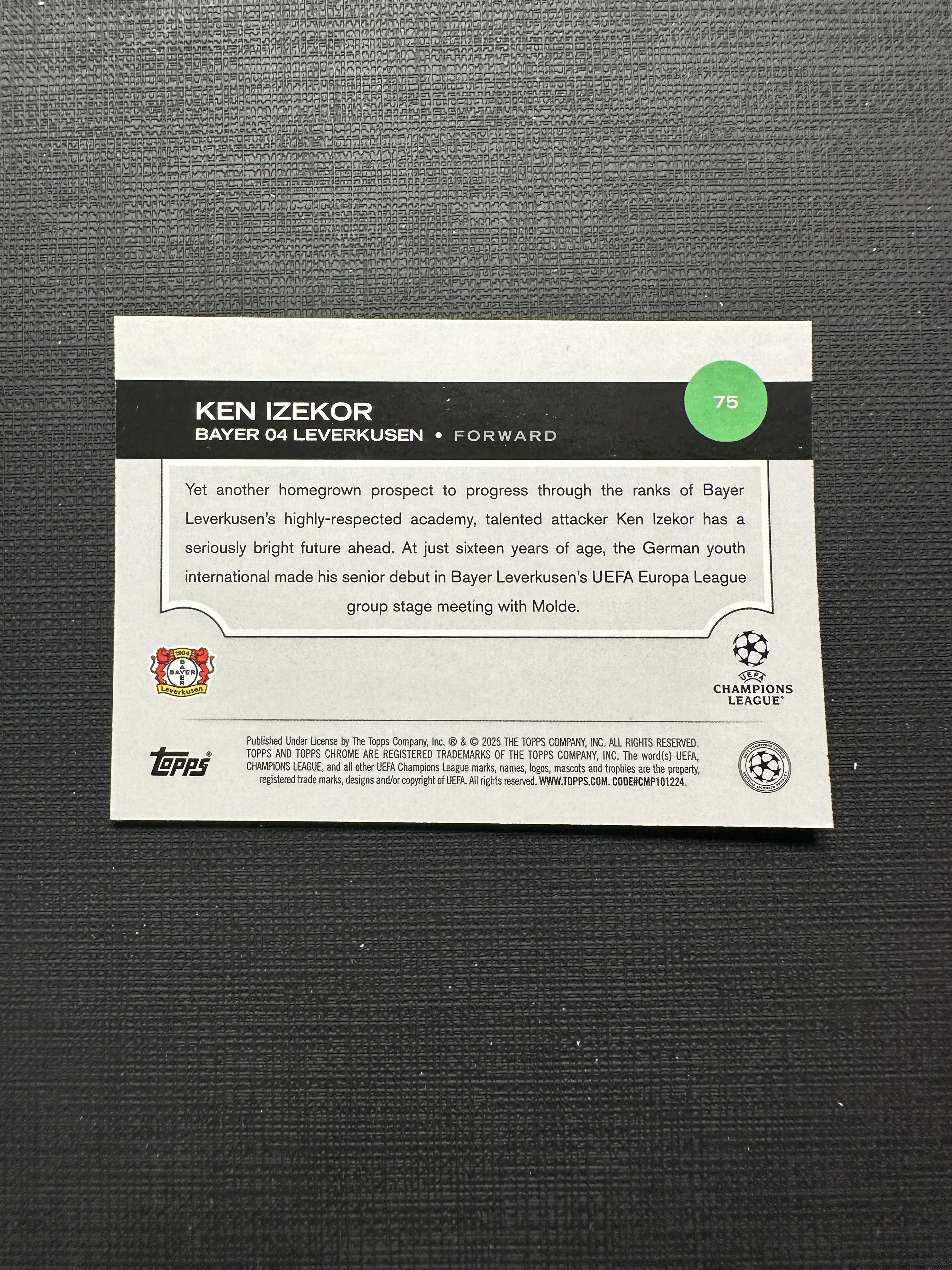 2025 Topps Chrome Ken Izekor RC 伊泽科尔 新秀 勒沃库森 欧冠 TC 粉折188/250编【卡品如图 不累计 不到付】王1
