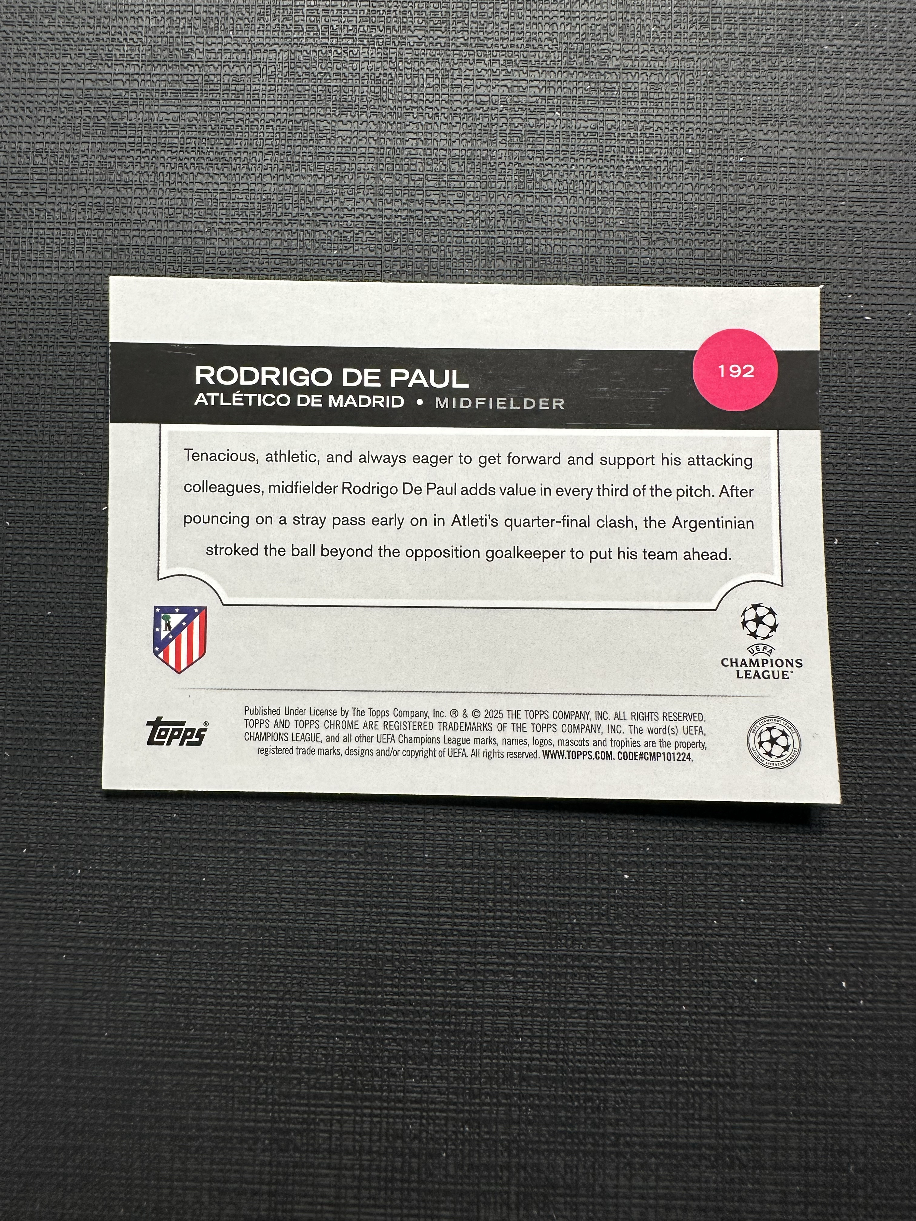 2024-25 Topps Chrome Rodrigo de Paul 德保罗 马竞 欧冠 113/125编【卡品如图 不累计 不到付】王1
