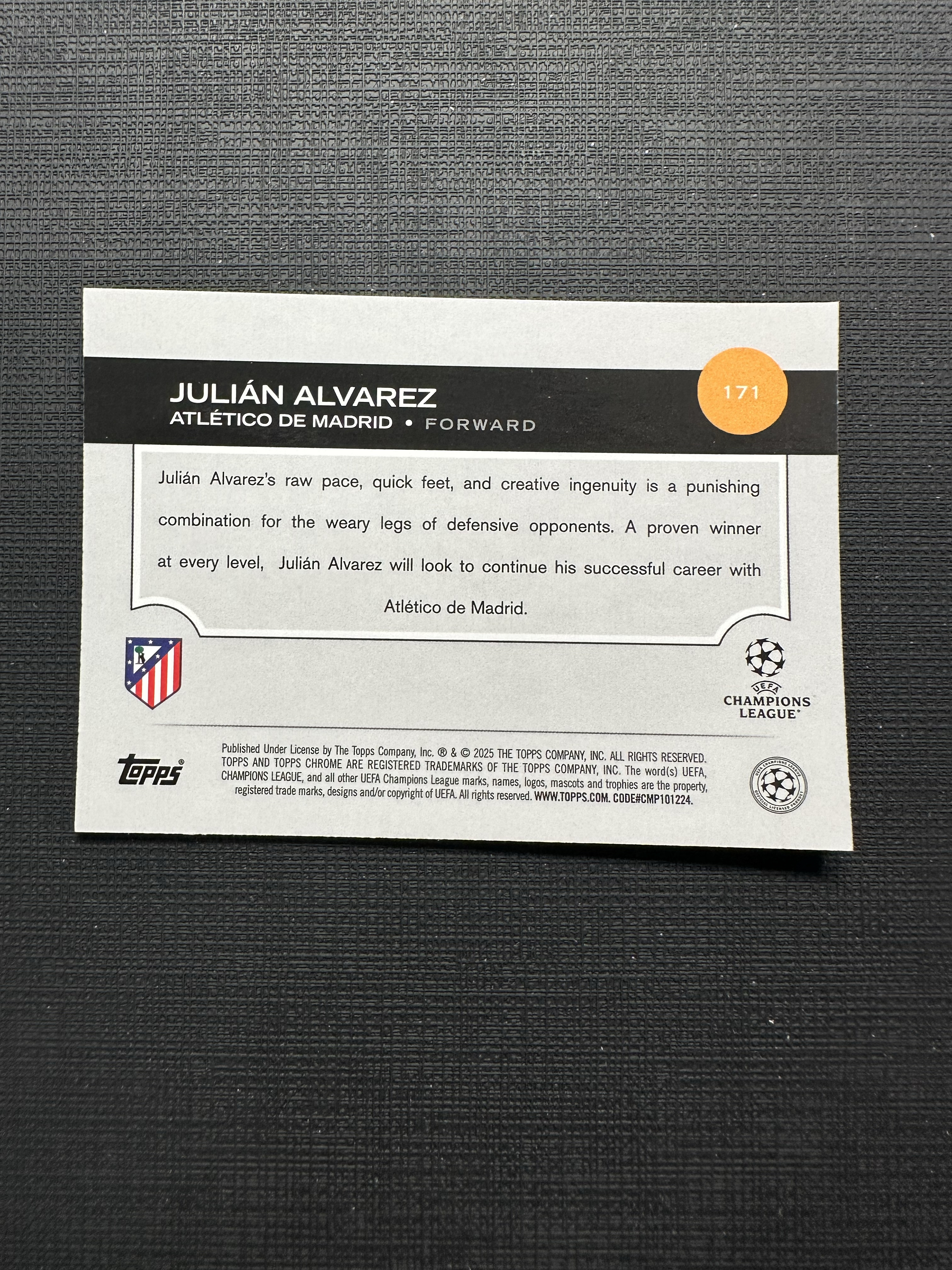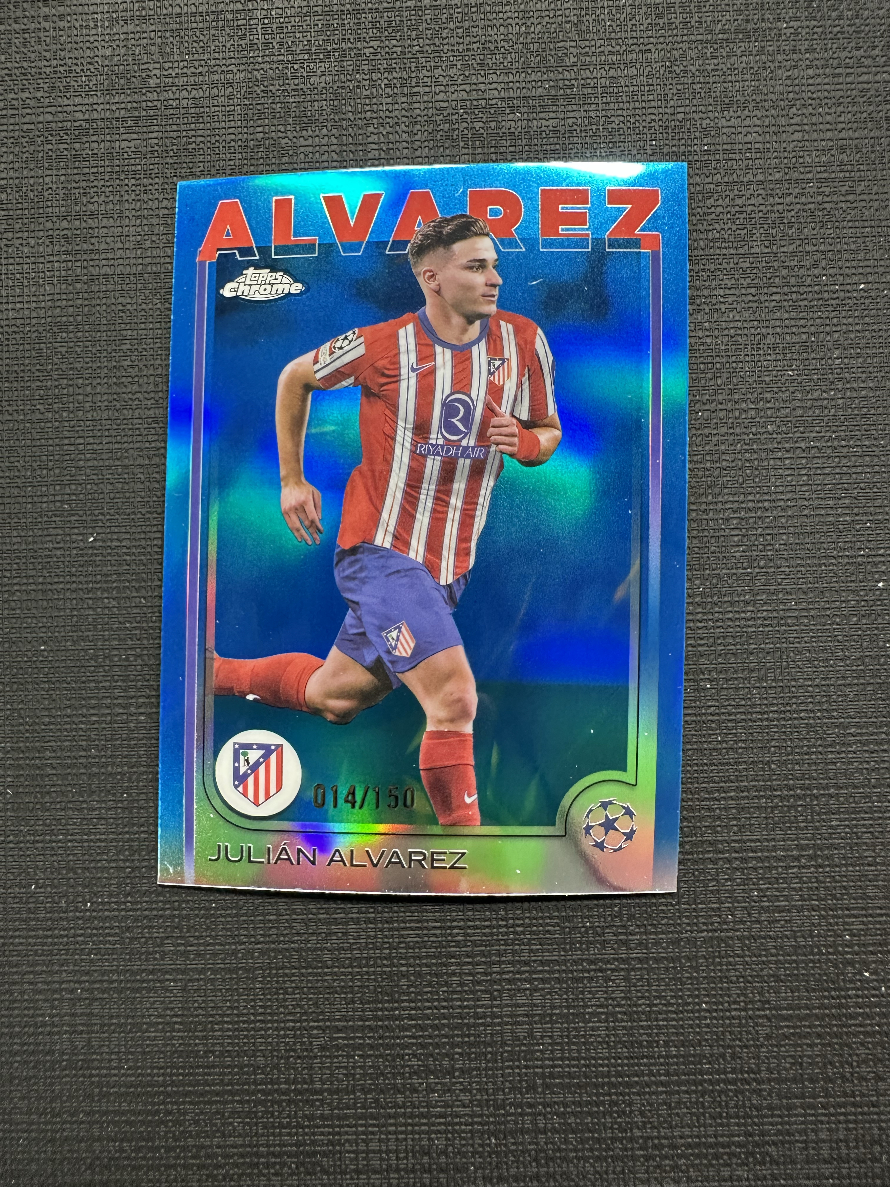 2025 Topps Chrome Julian Alvarez 欧冠 TC 马德里竞技 阿尔瓦雷斯 小蜘蛛 蓝脉冲折014/150编【卡品如图 不累计 不到付】王1