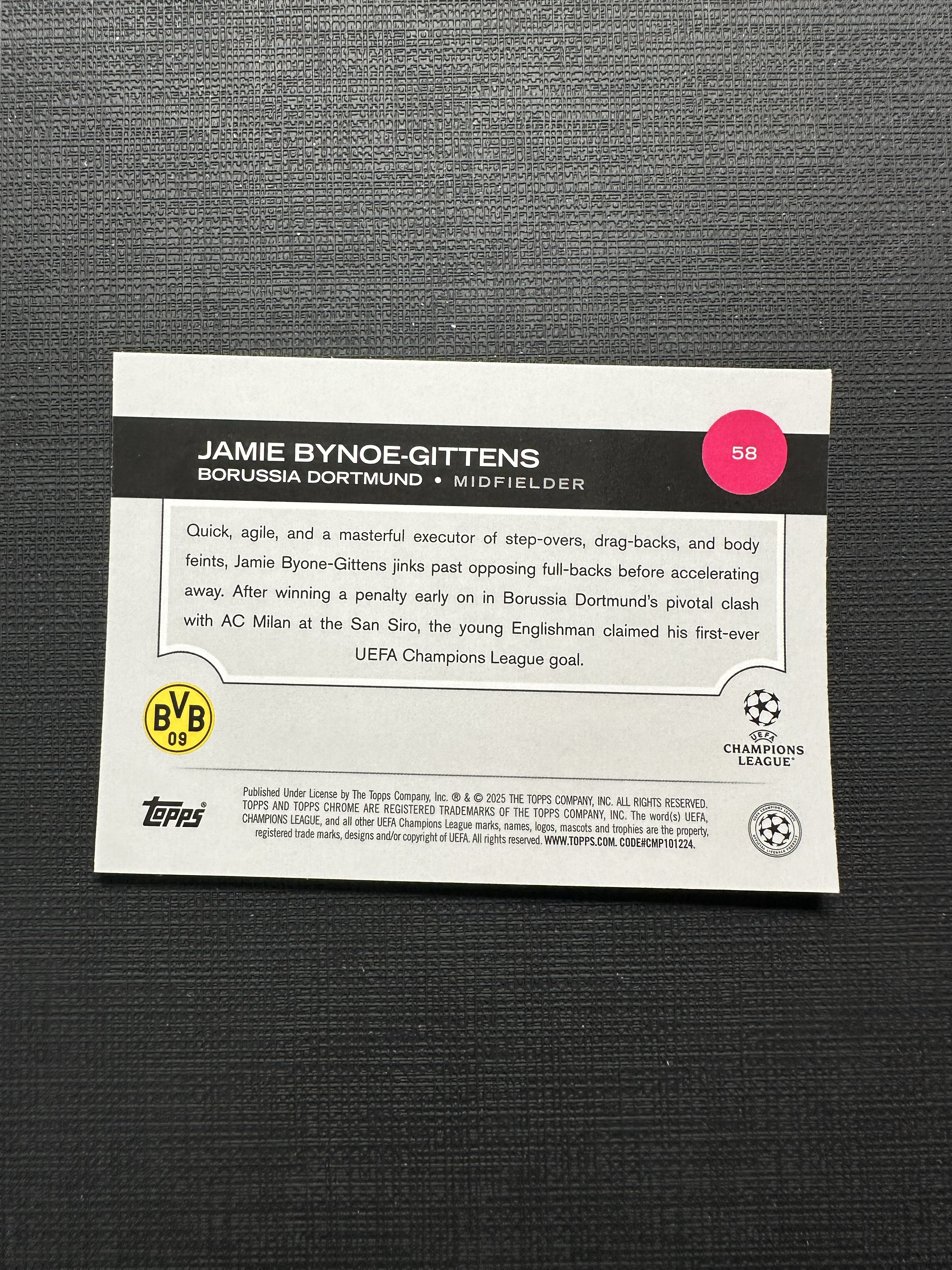 2025 Topps Chrome Jamie Bynoe-Gittens 杰米·拜诺-吉滕斯 多特蒙德 青折014/199编【卡品如图 不累计 不到付】王1