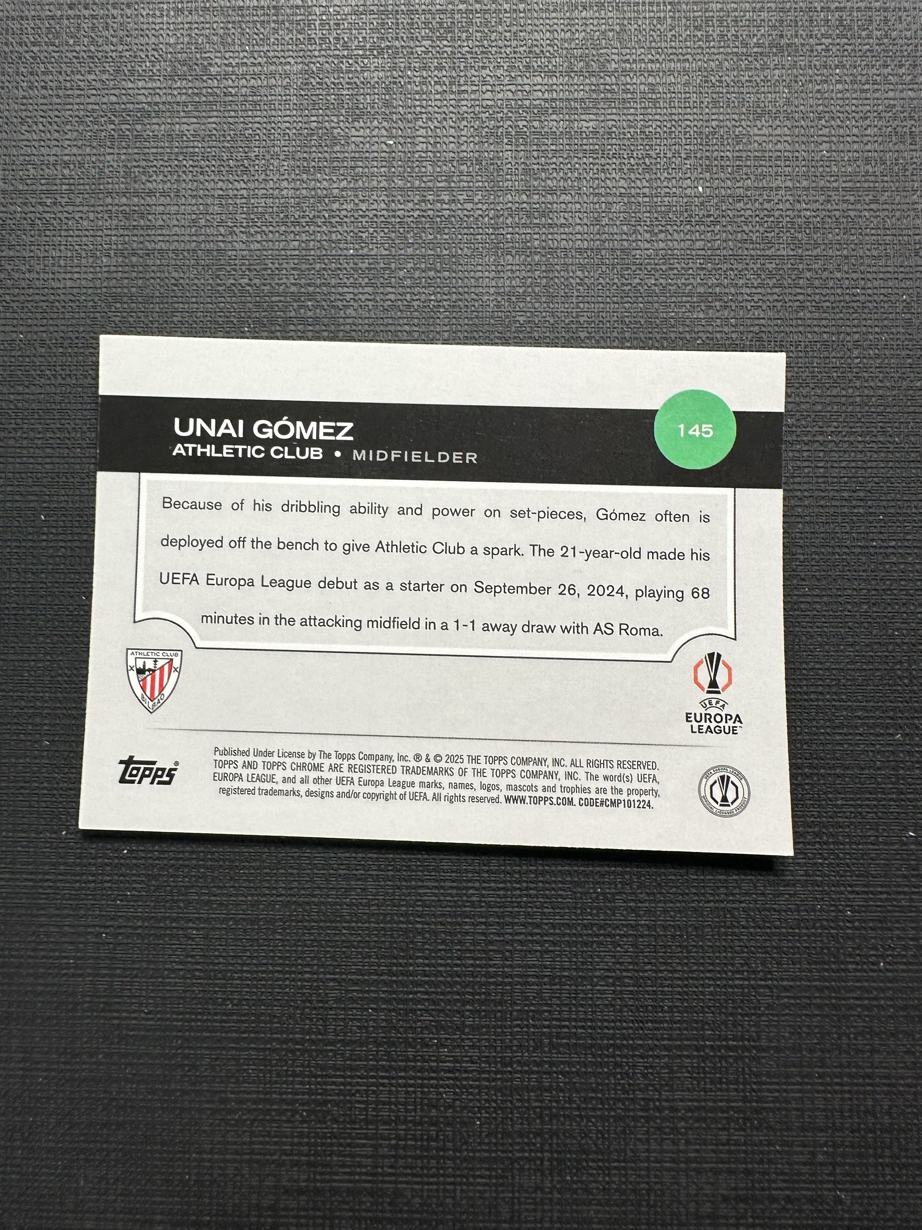 2025 Topps Chrome UNAI GOMEZ TC 欧冠 西班牙 毕尔巴鄂竞技 乌奈 戈麦斯146/250编 粉熔岩折 折射 收藏 专收必备 卡品如图 王1