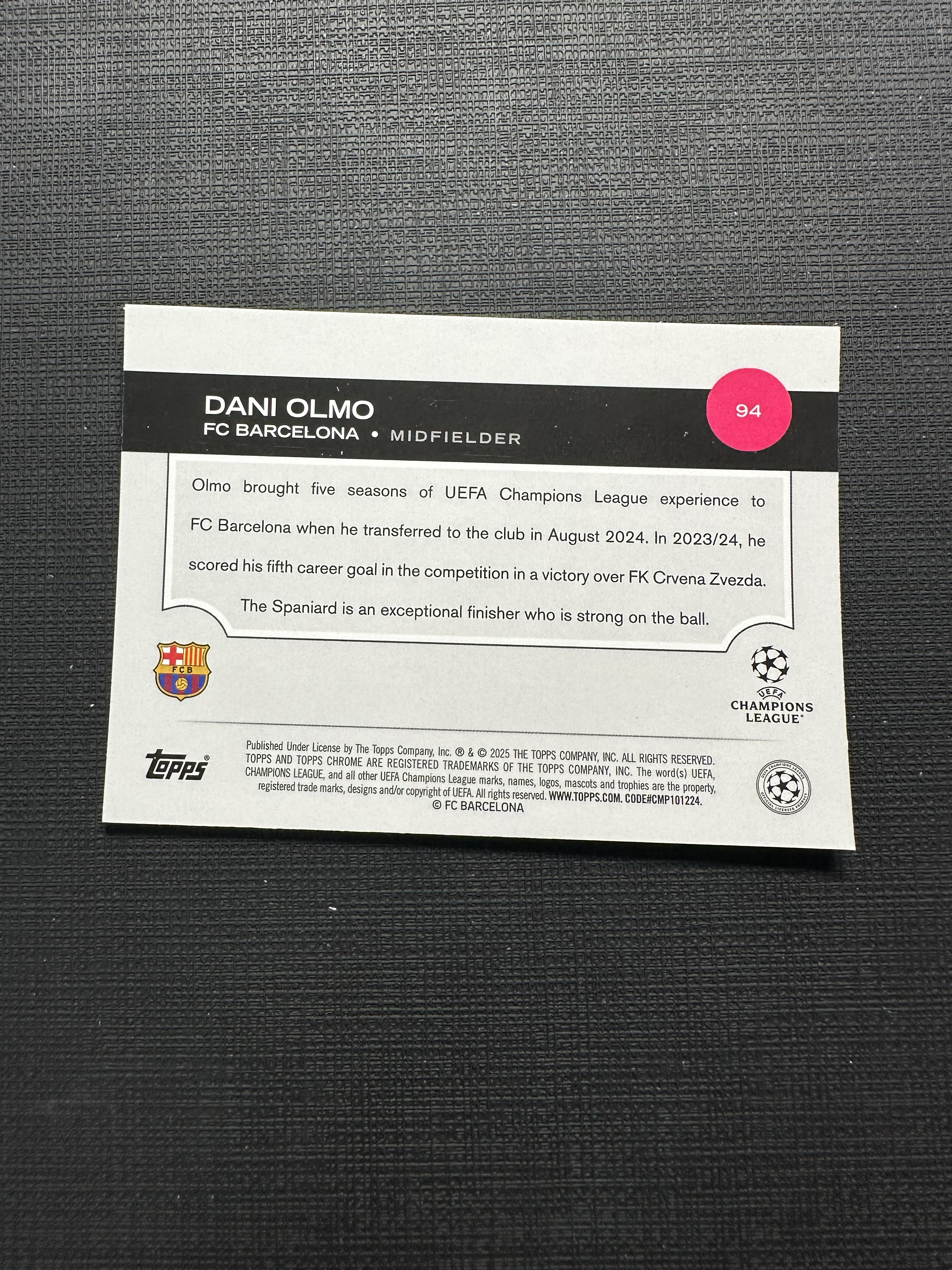 2025 Topps Chrome Dani Olmo 欧战TC 巴塞罗那 丹尼 奥尔莫 135/225编 夜视变形虫折 折射【卡品如图 不累计 不到付】王1