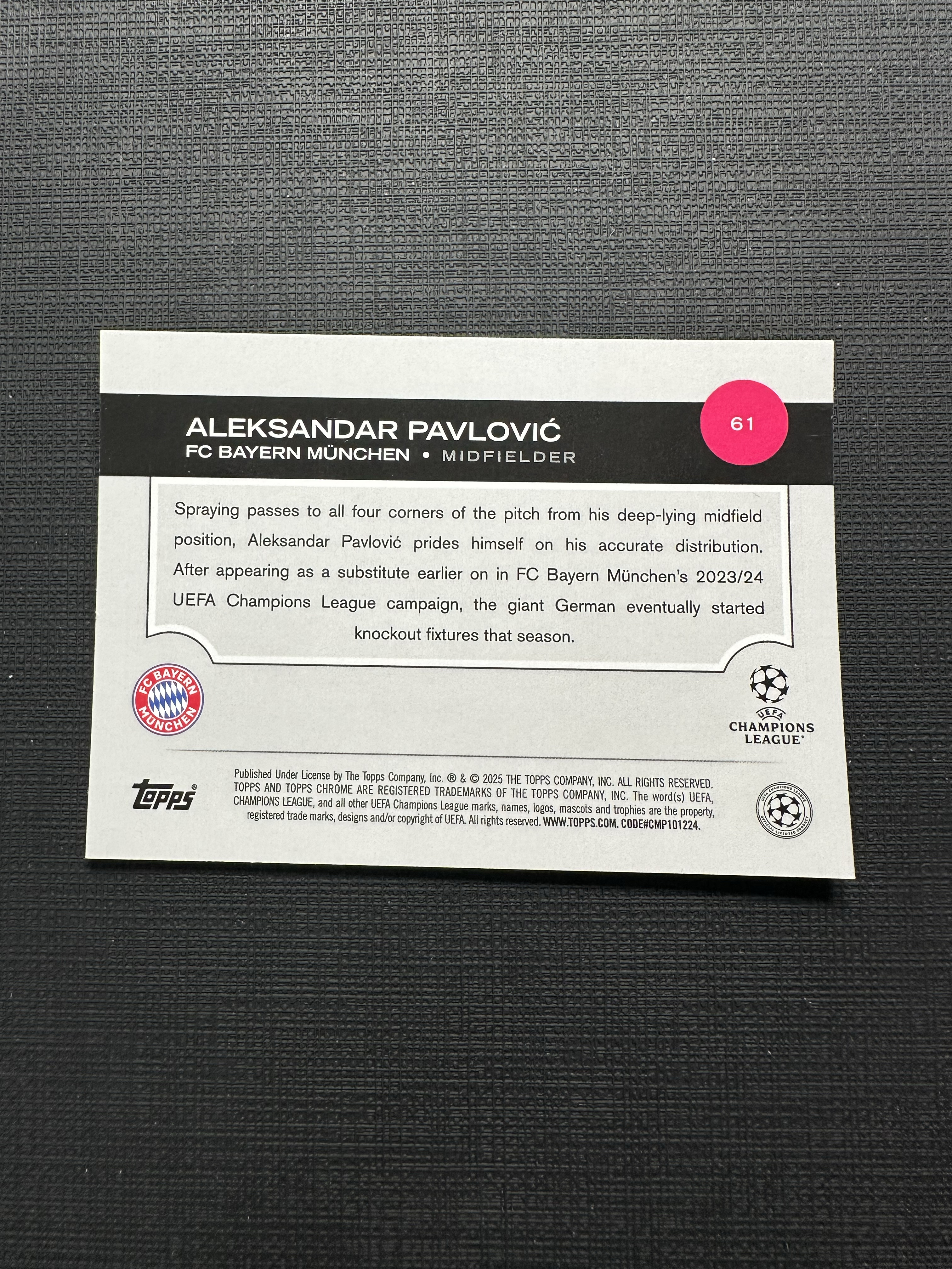2025 Topps Chrome ALEKSANDAR PAVLOVIC 欧战TC 拜仁慕尼黑 帕夫洛维奇 泡芙 078/250编 粉折 折射【卡品如图 不累计 不到付】王1