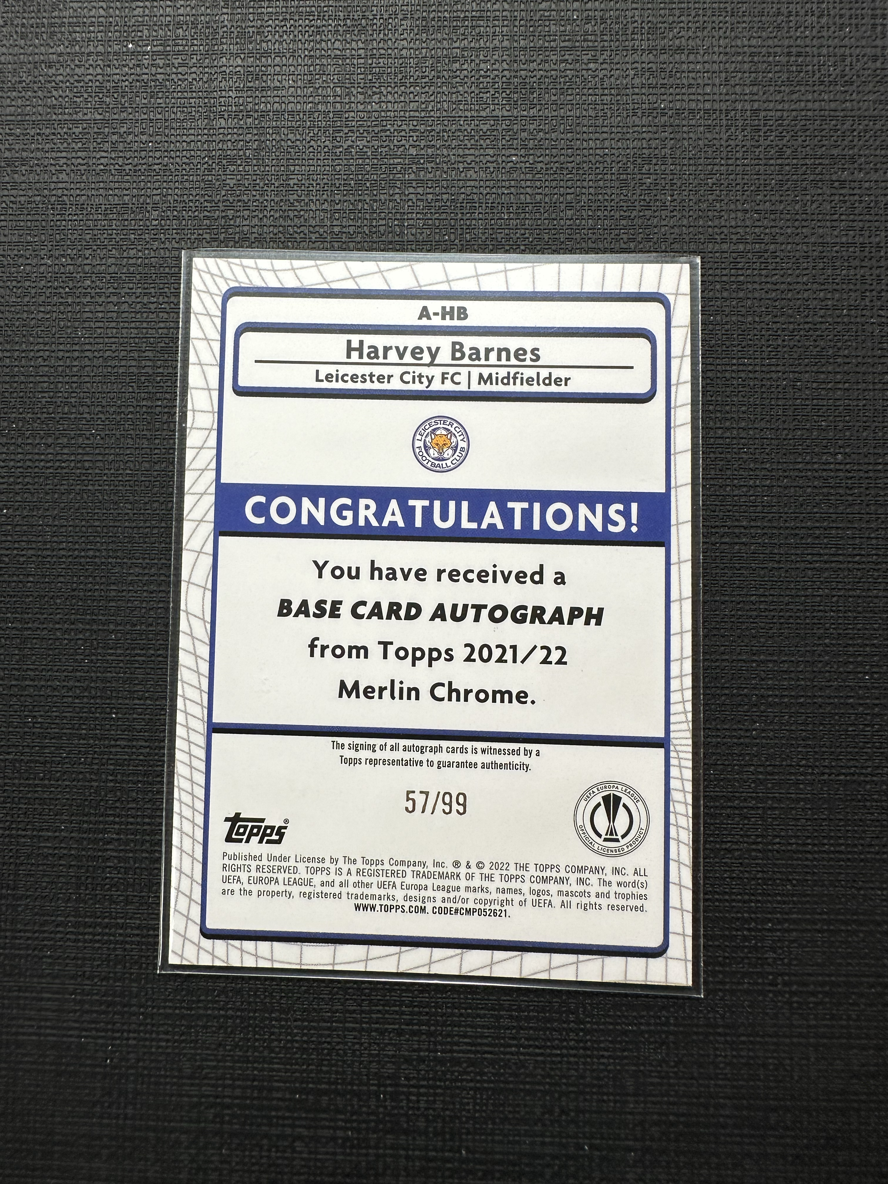 2021-22 Topps Merlin 梅林 Harvey Barnes 哈维巴恩斯 57/99编 Mojo折 签字 Auto 纽卡斯尔联【卡品如图 不累计 不到付】王1