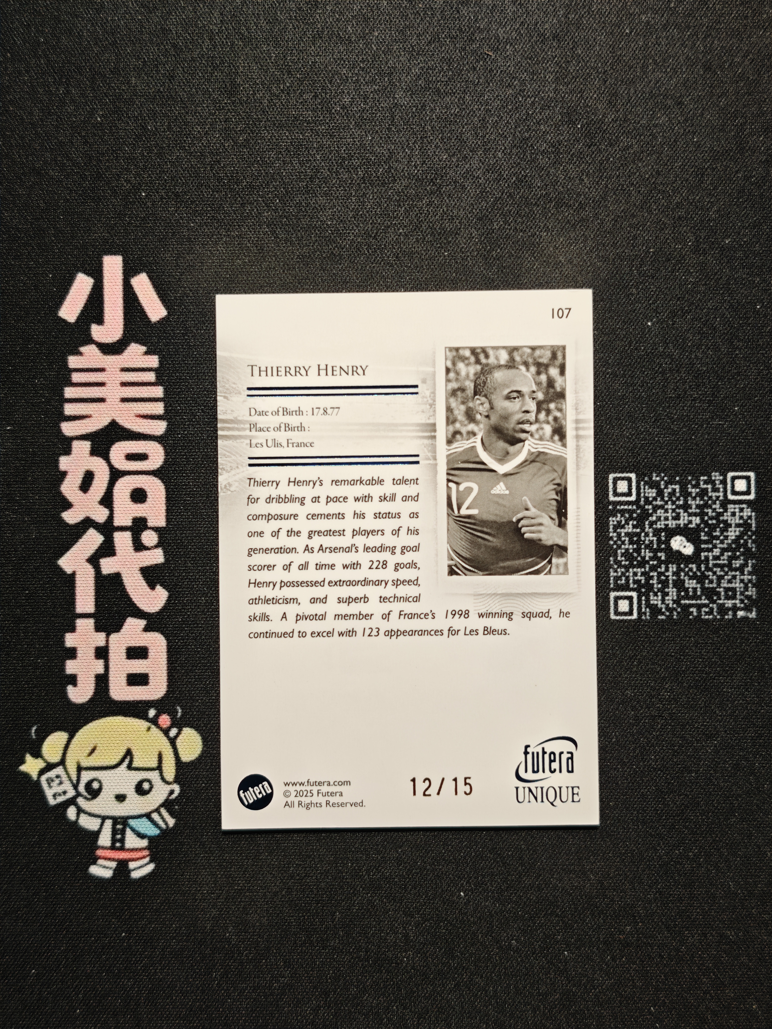 2025 Futera Futera Unique Thierry Henry 亨利 法国 阿森纳 巴萨 福特拉 base 平行 12/15编 萨拉赫队友 专收必备 W总