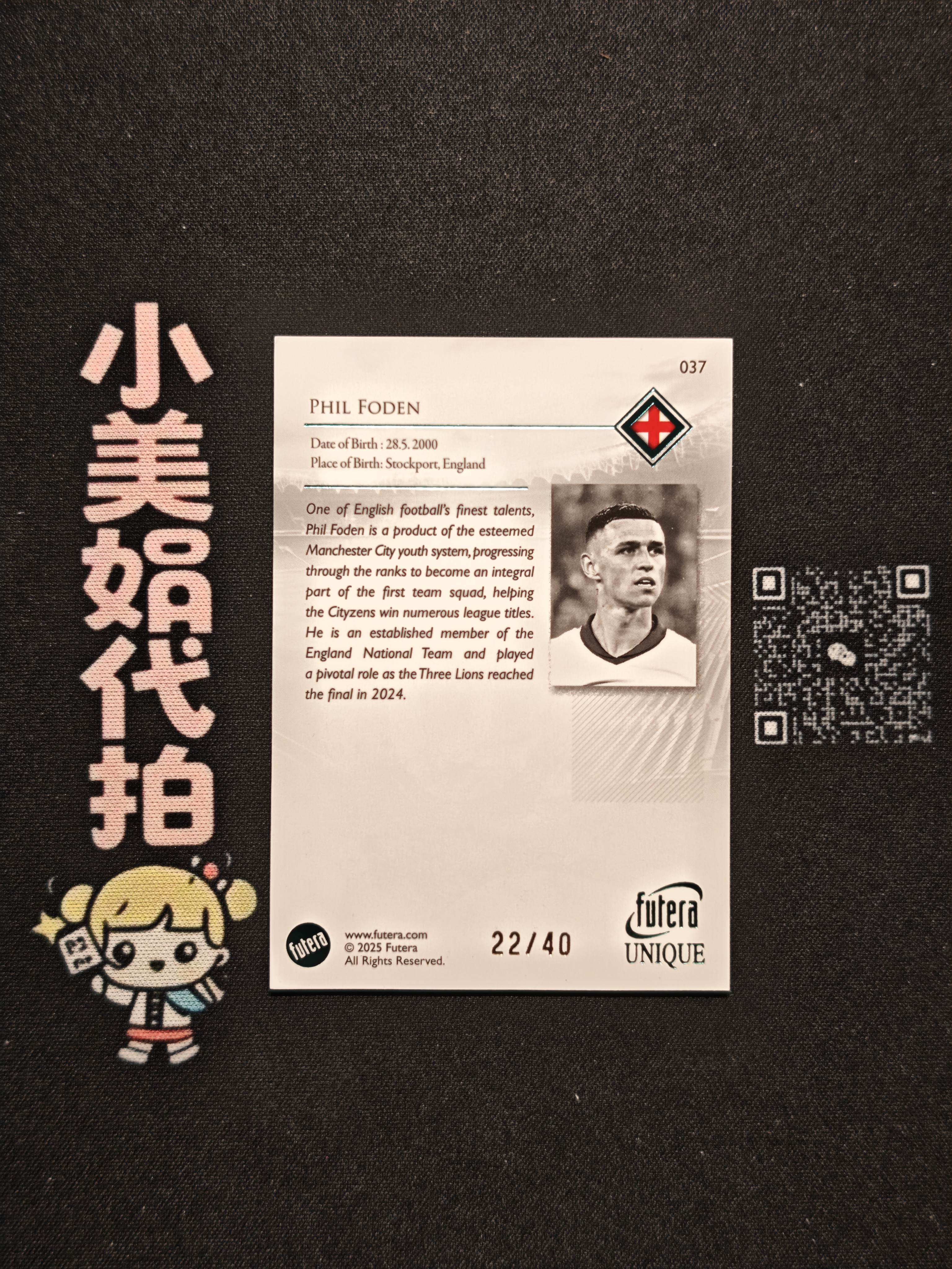 2025 Futera Futera Unique Phil Foden 菲尔 福登 英格兰 曼城 福特拉 base 平行 22/40编 哈兰德队友 专收必备 W总