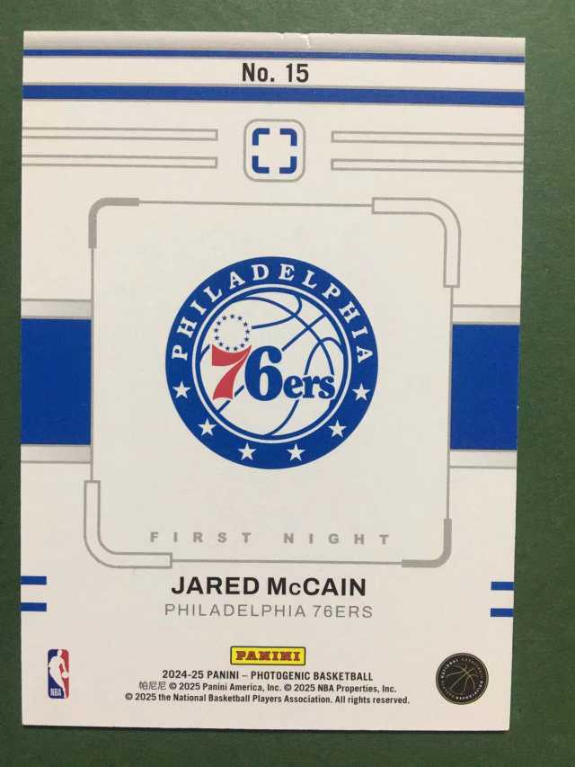 2024-25 Panini Photogenic Jared McCain RC 上镜 新秀 76人 贾里德 麦凯恩 FIRST NIGHT 首秀之夜 特卡 双手扣篮选图 base 上边微瑕#五