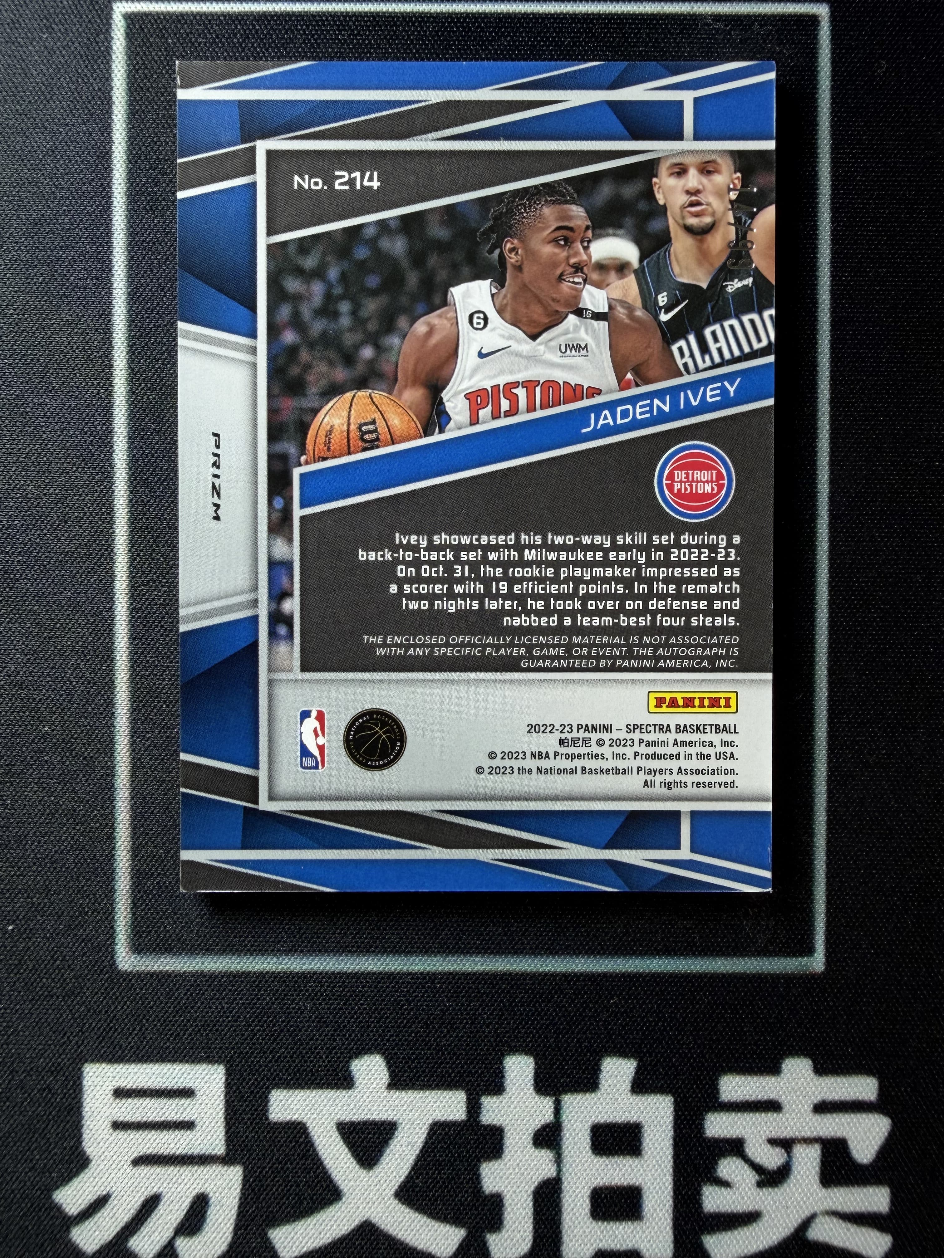 【易文拍卖 超级回款】2022-23 Panini Spectra 光谱 JADEN IVEY 杰登 艾维 活塞 RC新秀 14/99编 球衣物料切割 签字签名 #Yung