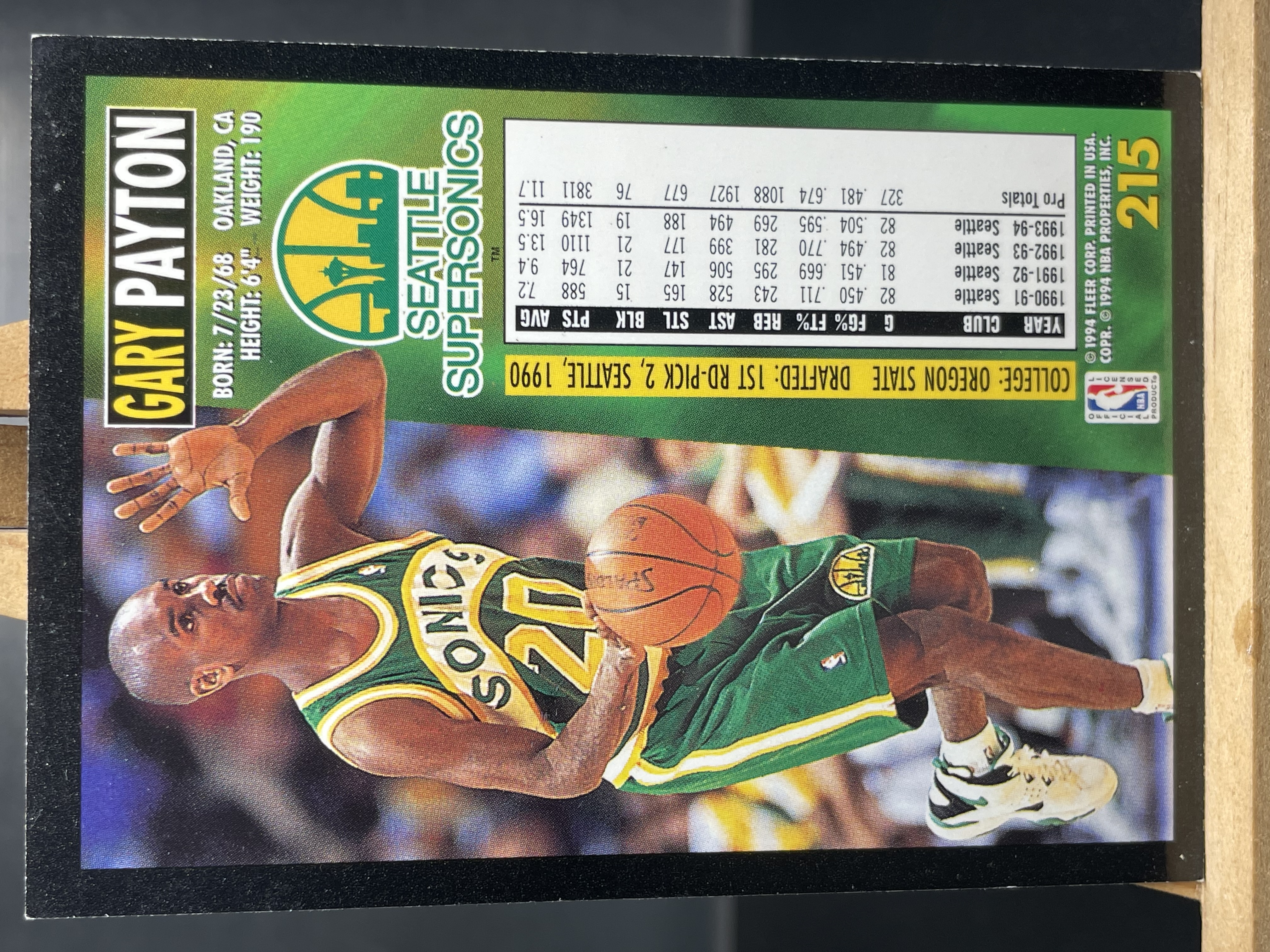 (C2) 1994 FLEER 老卡 手套 加里 佩顿 近期大热球星 收藏必备 卡面老化 边角暇 ! ! !