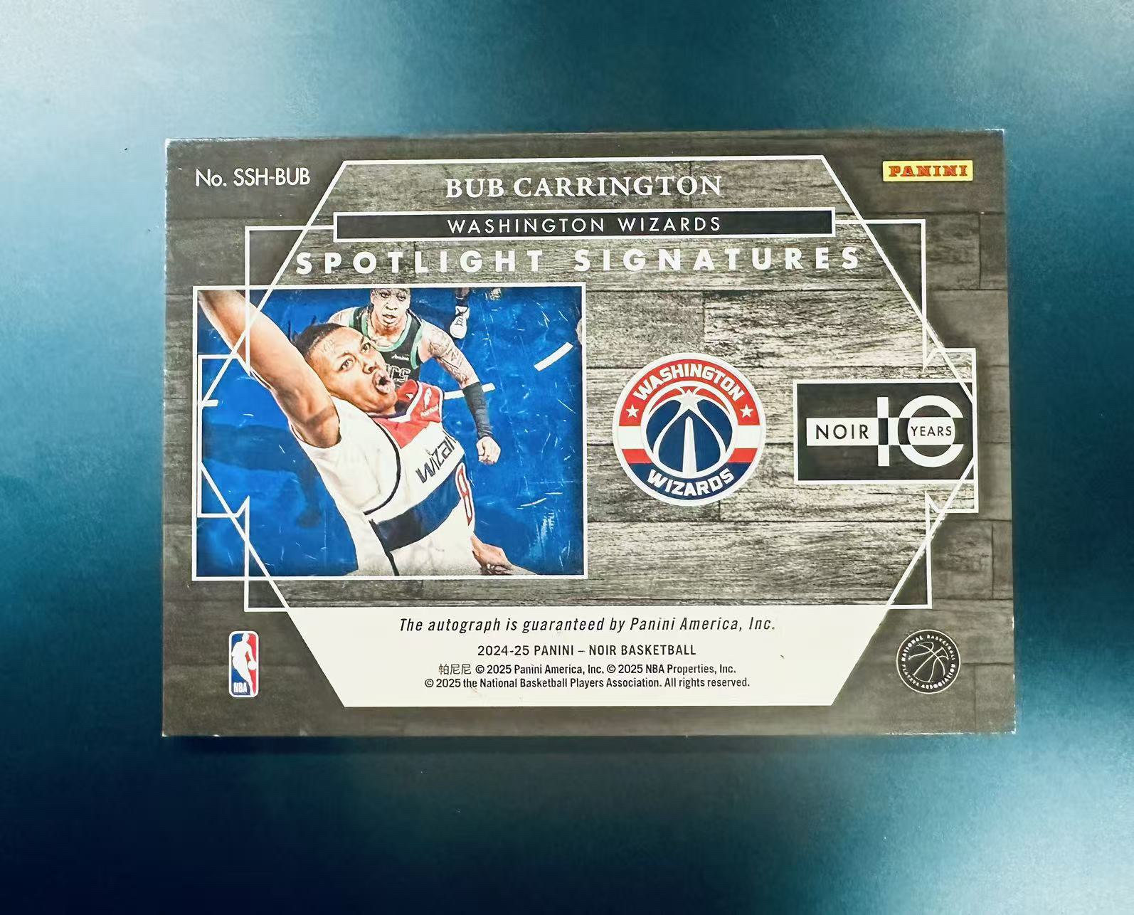 Bub Carrington 卡林顿 卡灵顿 2024-25 Noir 诺尔 Spotlight RC新秀 /99编 签字 卡签 聚光灯 奇才队