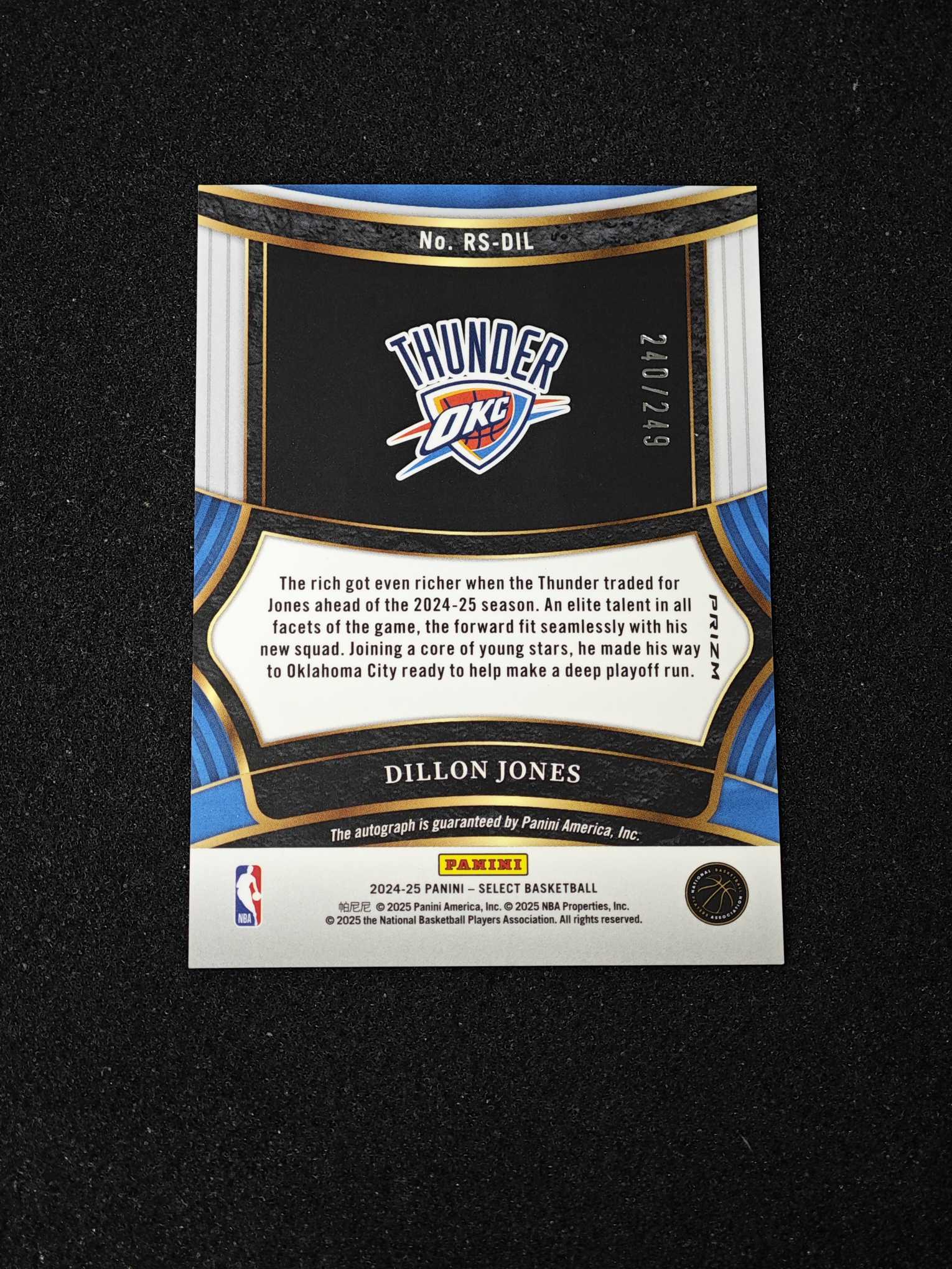 2024-25 Panini Select Dillon Jones RC 雷霆 狄龙 琼斯 选秀年 新秀年 银折 RC 签字 贴签 折射 249编 水水