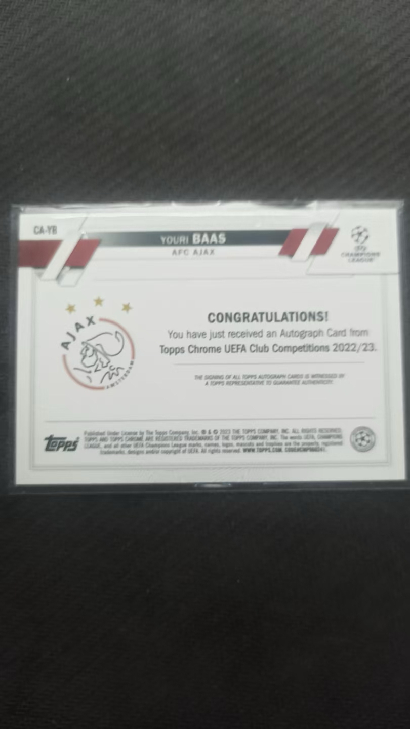 2023 Topps Chrome Youri Baas 尤里 巴斯 荷兰 阿贾克斯 tc 银折 签字 RC 新秀 潜力无限 值得投资 凌风