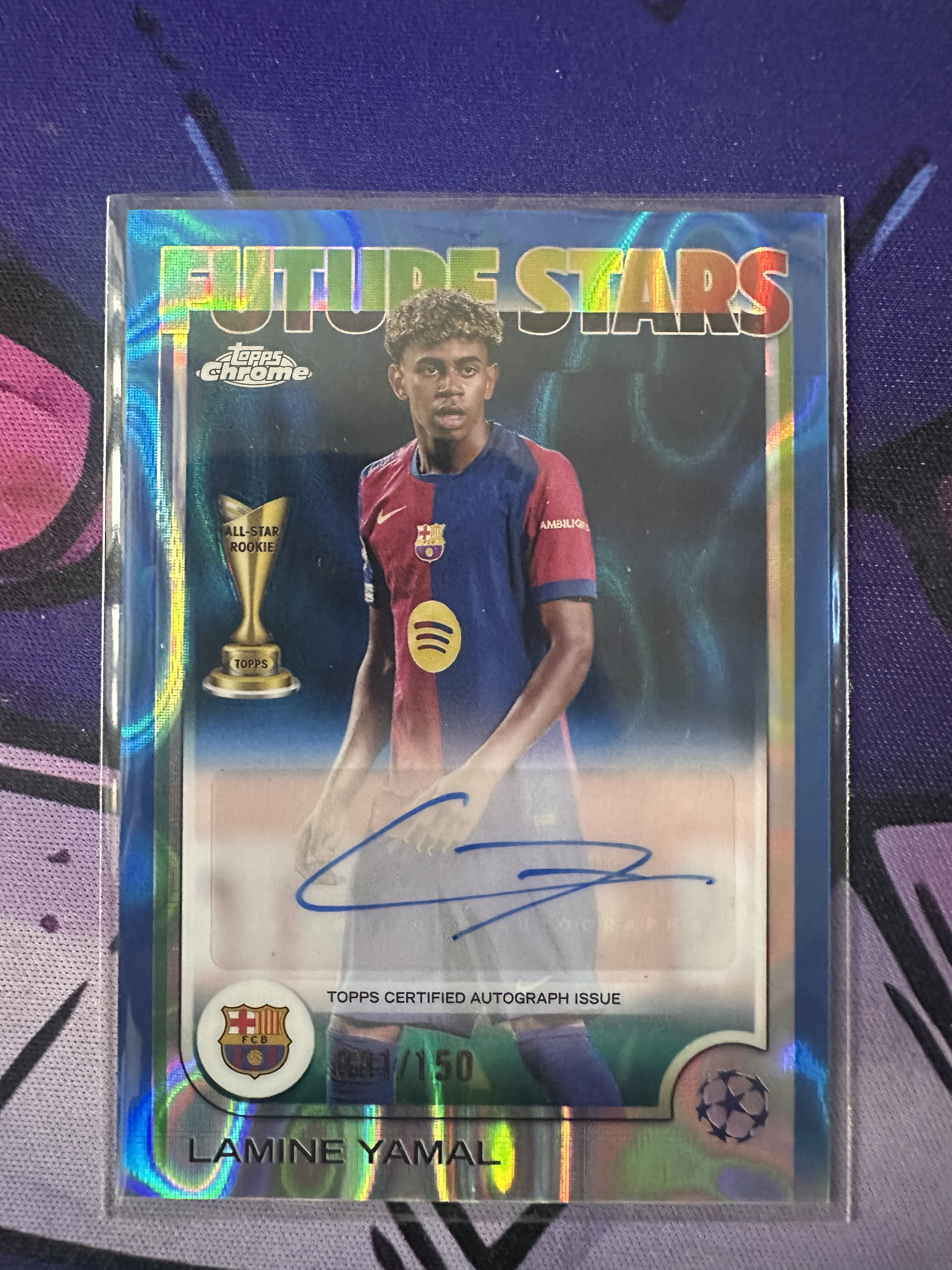 2025 Topps Chrome Lamine Yamal 亚马尔 未来之星 蓝折 蓝熔岩 1/150 编 签字 首编 超级新星 西班牙 巴塞罗那