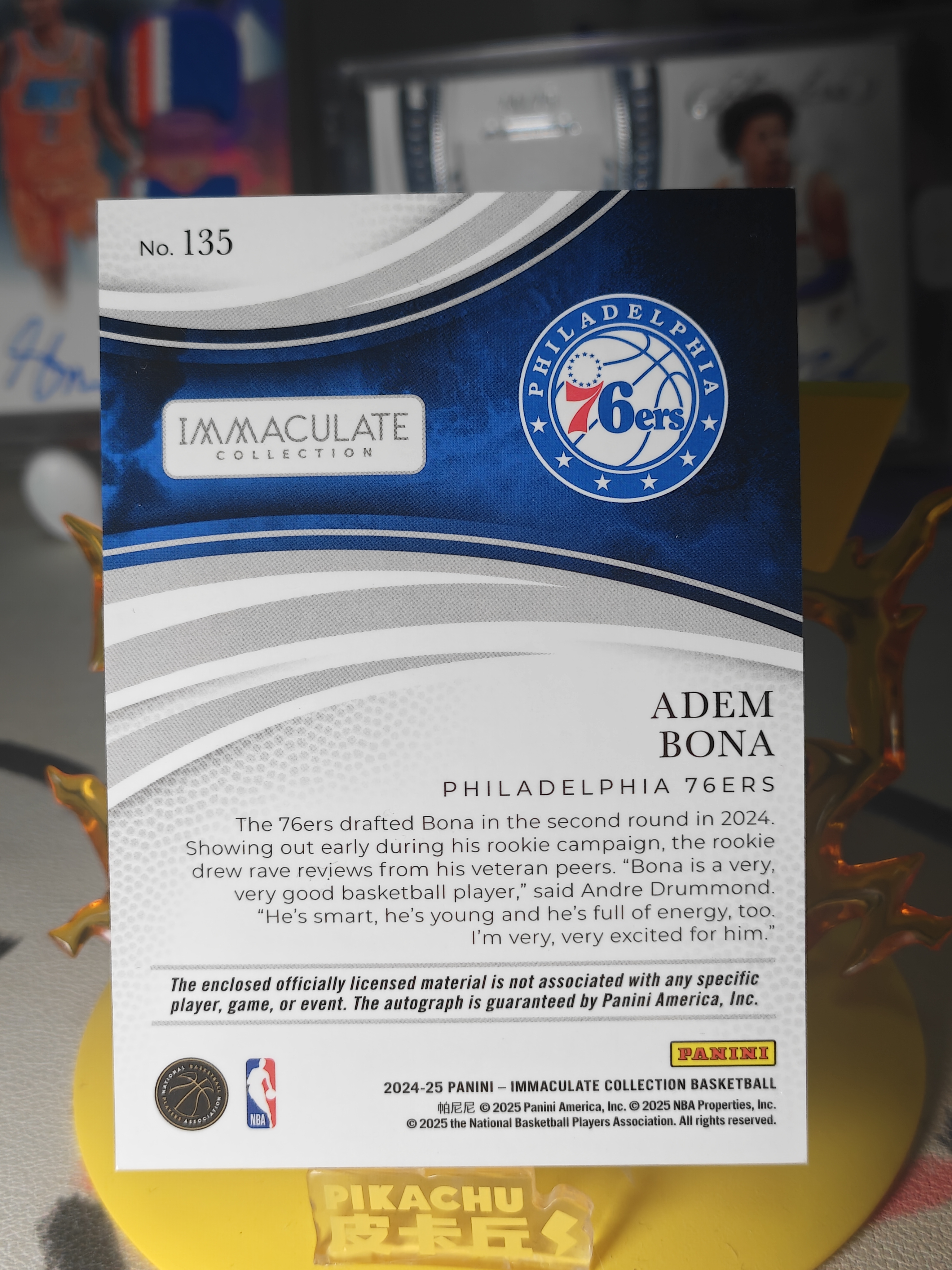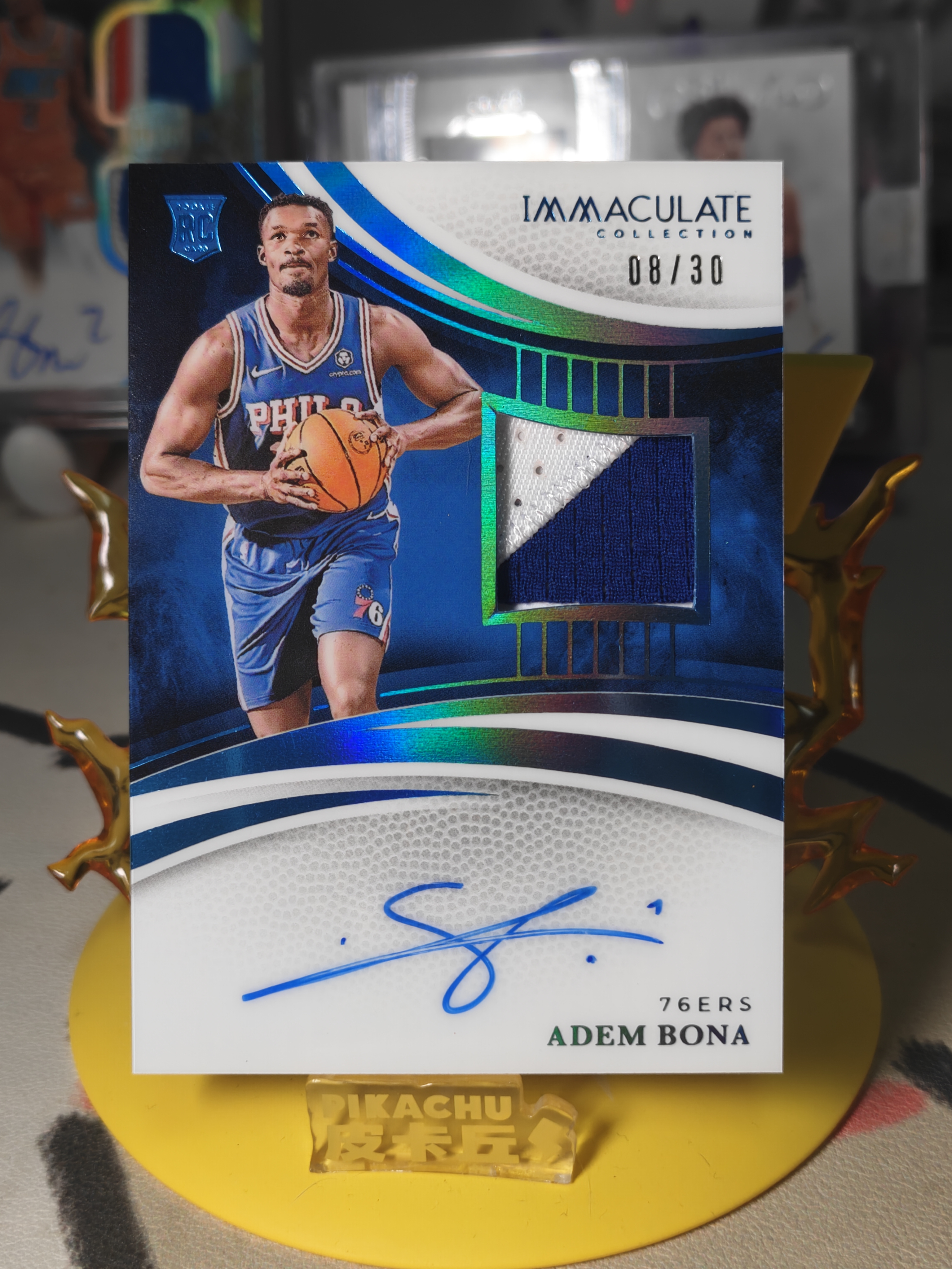 2024-25 Panini Immaculate Adem Bona RC 爱咪咪 76人 阿德姆 博纳 新秀 签字 RPA NPA 球衣切割 湖水蓝闪 镜面卡签 08/30编 背号编 专收必备