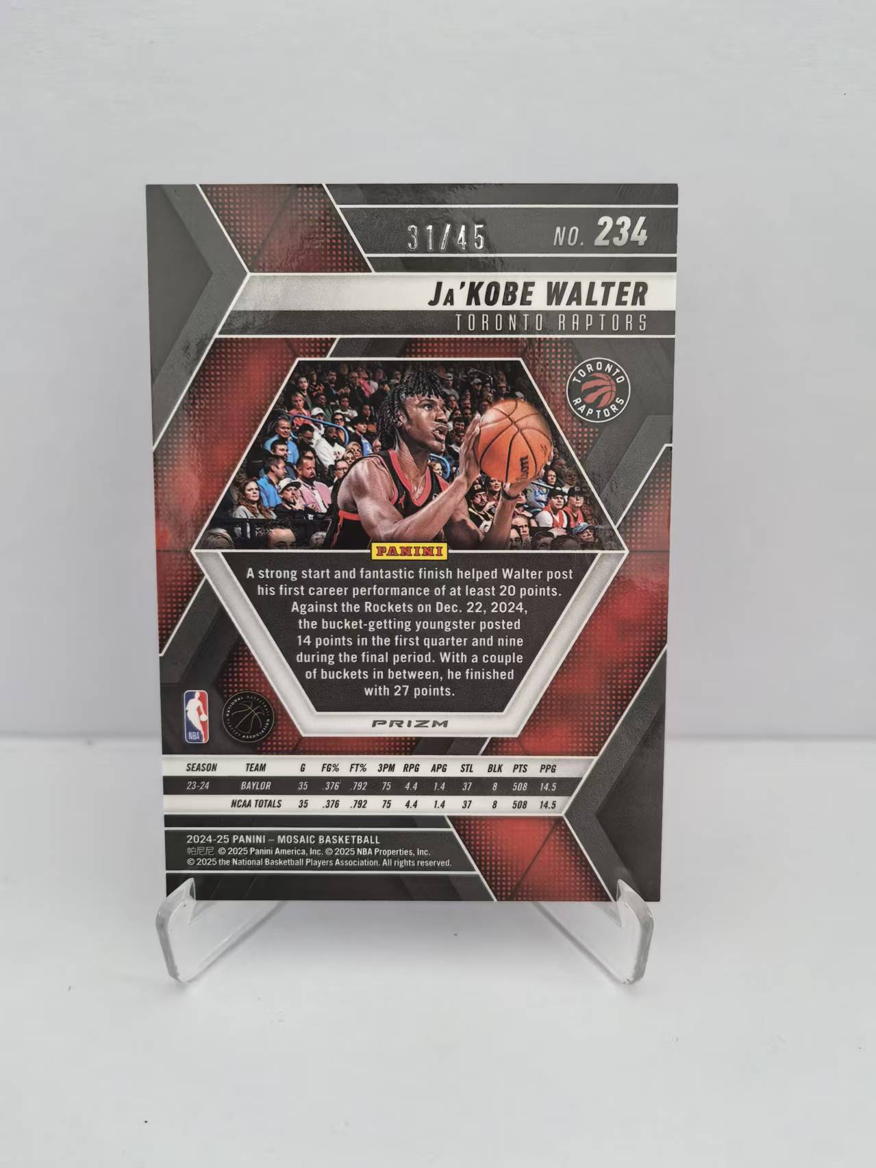 2024-25 Panini Mosaic Ja'Kobe Walter RC 猛龙 贾科比 沃尔特 马赛克 新秀年 白折 31/45编 低编 限量稀有 收藏必备 卡品如图 多多Y