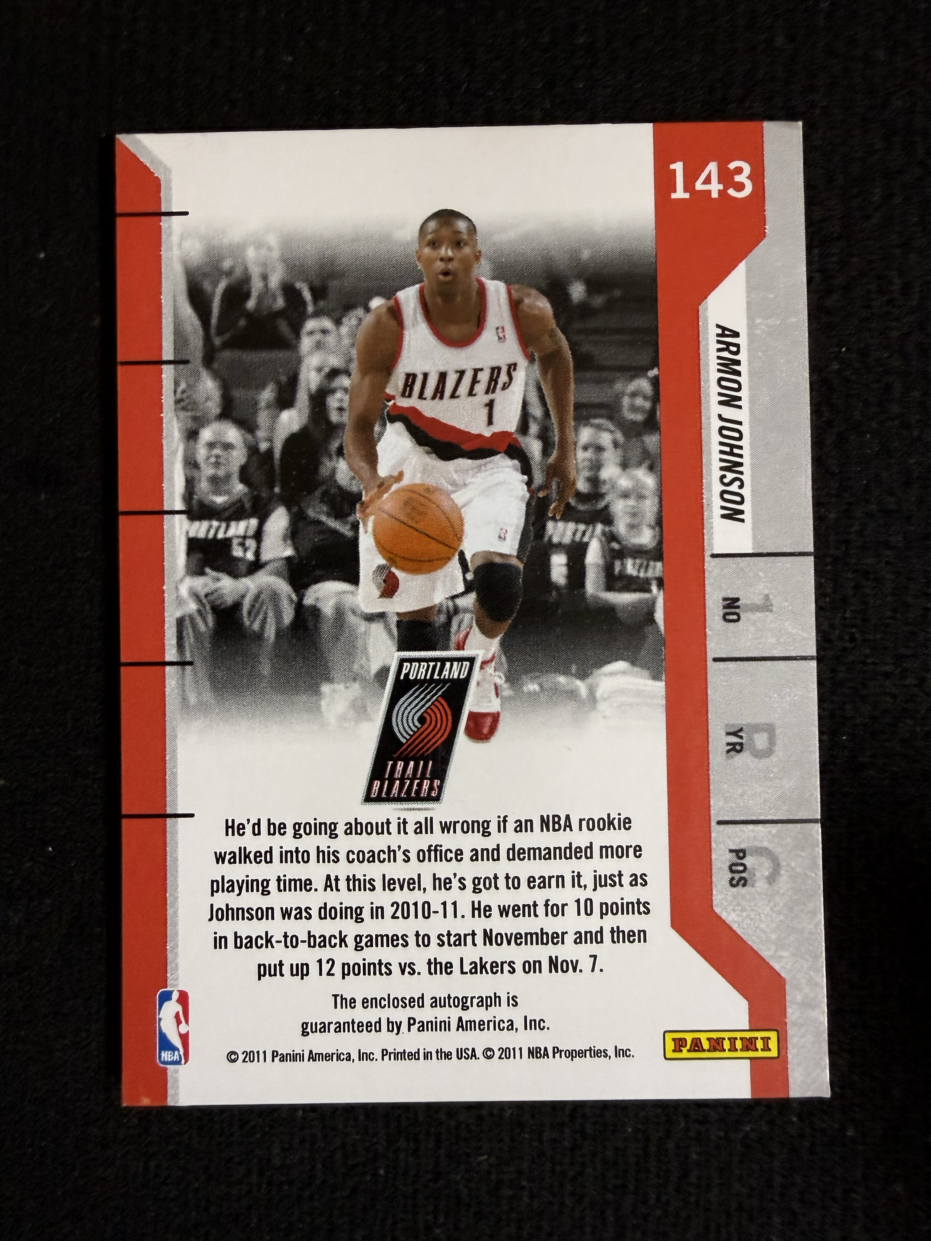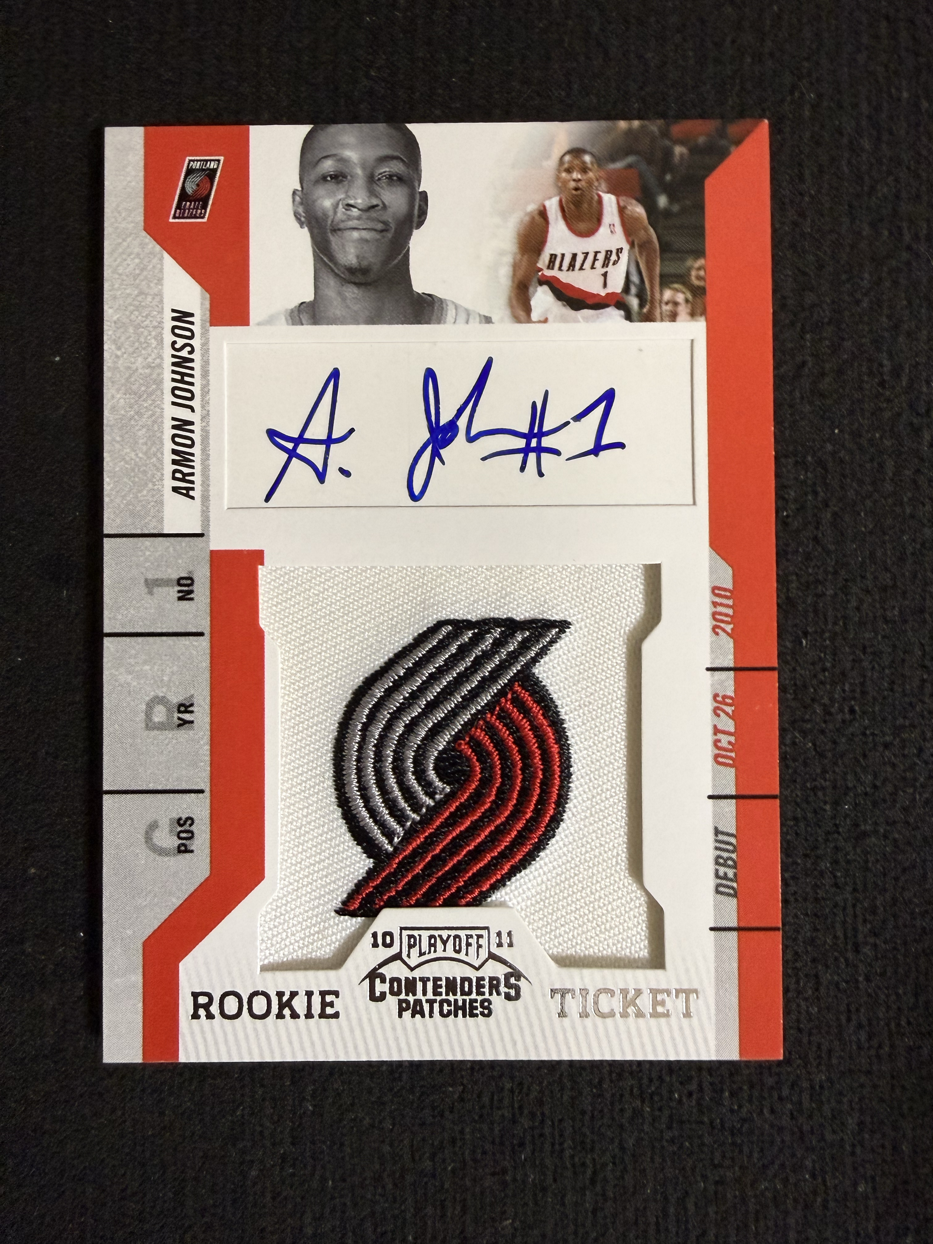 2010-11 Panini Contenders Armon Johnson RC 开拓者 球票 阿蒙 约翰逊 球队 队徽 刺绣 新秀 卡签 签字 收藏必备 (海哥)