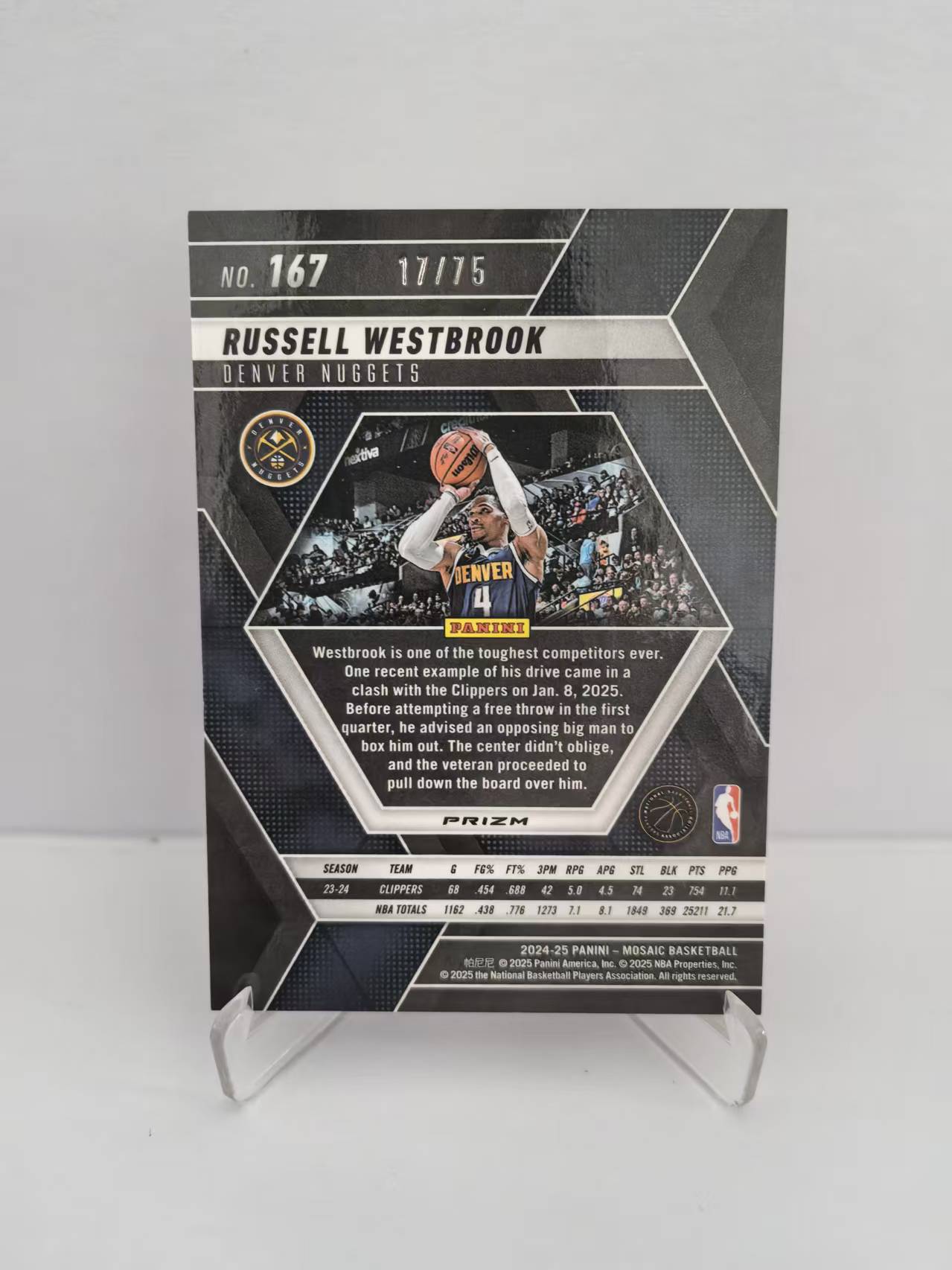 2024-25 Panini Mosaic Russell Westbrook 掘金皮 威少 拉塞尔 威斯布鲁克 马赛克 蓝马赛克折 17/75编 限量稀有 收藏必备 卡品如图 多多Y